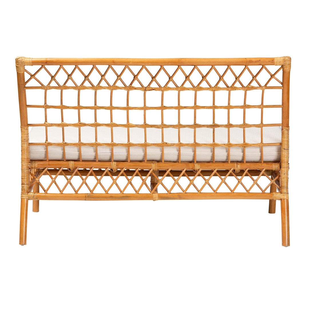Bring relaxed, island-inspired style to your dining space with the Capella Dining Bench. Handcrafted in Indonesia from natural rattan, this modern bohemian piece combines an airy openwork silhouette and geometric detailing with comfortable seating—making it ideal for casual meals, a breakfast nook, or as extra seating in living areas. The bench arrives fully assembled and includes a plush, removable cushion for immediate use.
