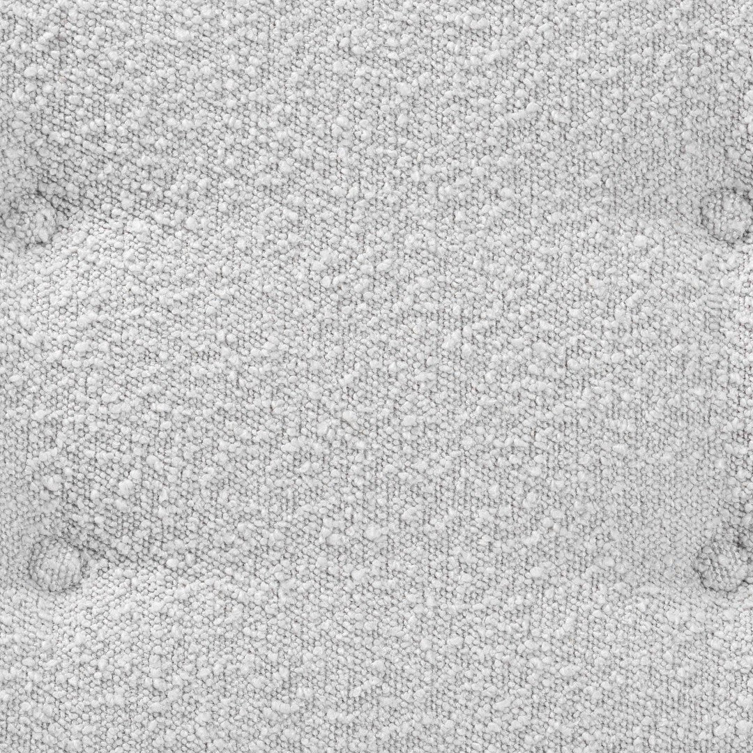 - Upholstery & comfort: Foam-padded rectangular seat upholstered in sumptuous light grey boucle fabric with button-tufted detail for timeless appeal and tactile comfort.