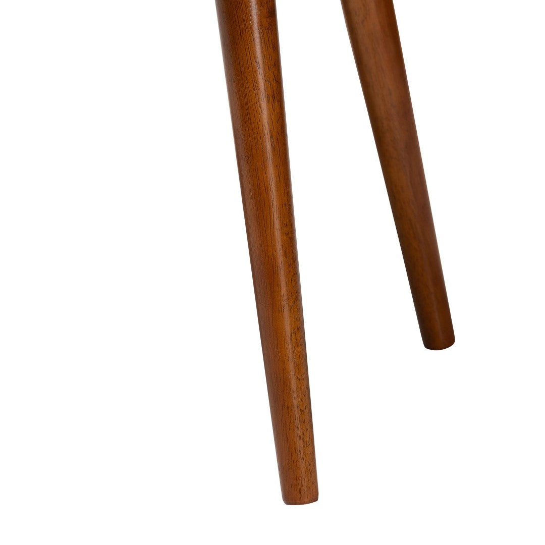 - Design Details: Mid-century modern profile with angled, tapered legs, curved edges, smooth grained finish, and a single row of decorative button tufting.
