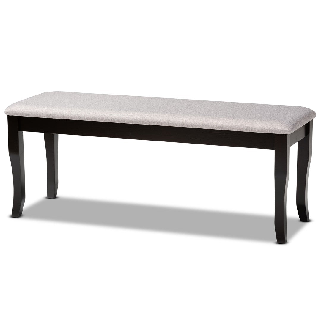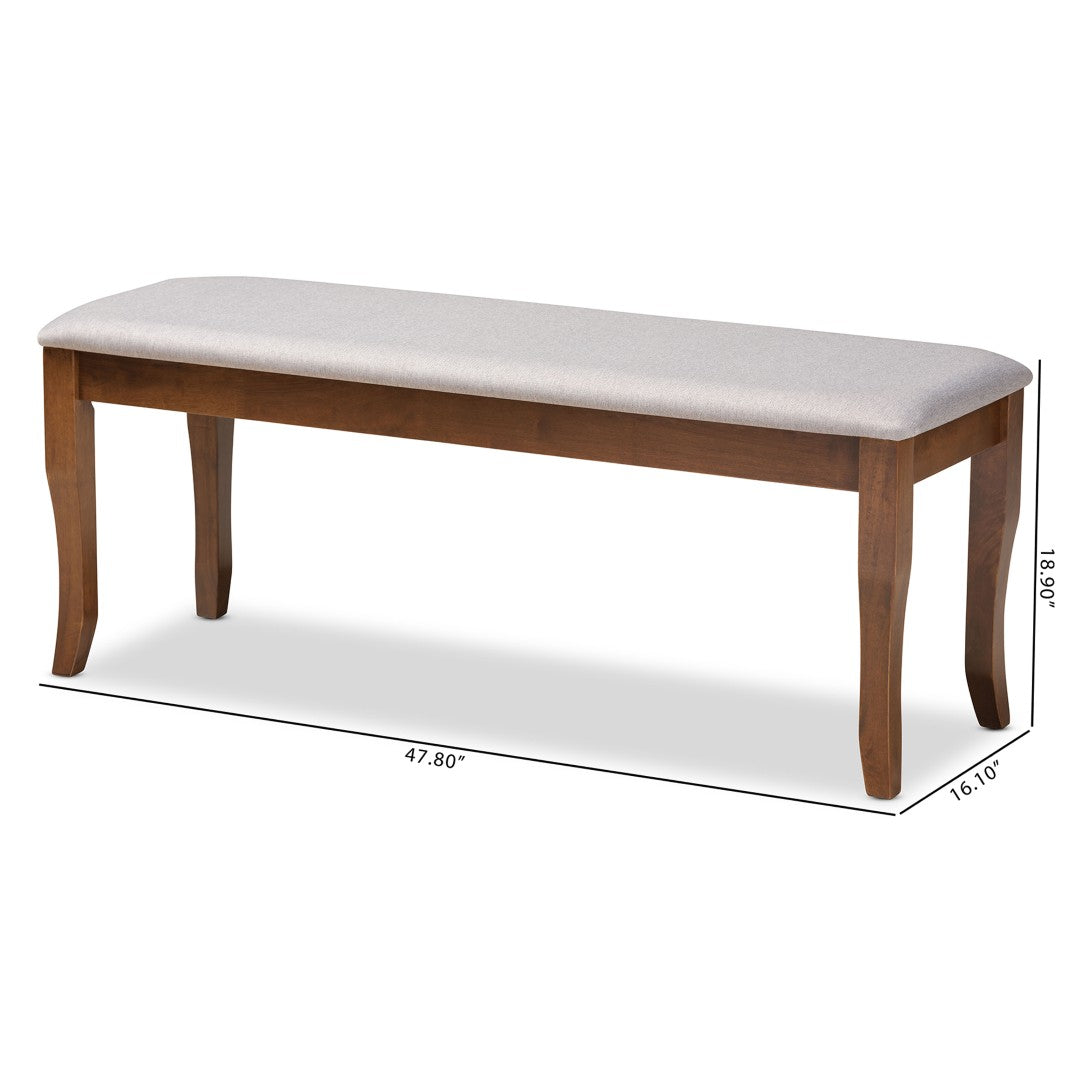 Add comfortable, versatile seating to your dining area with the Cornelie bench — a modern-transitional piece that pairs soft grey upholstery with warm walnut-brown wood for a refined yet relaxed look. Built from solid oak and rubberwood with classic cabriole legs, this bench offers plush seating and generous legroom, making it ideal for everyday family meals or occasional formal gatherings.