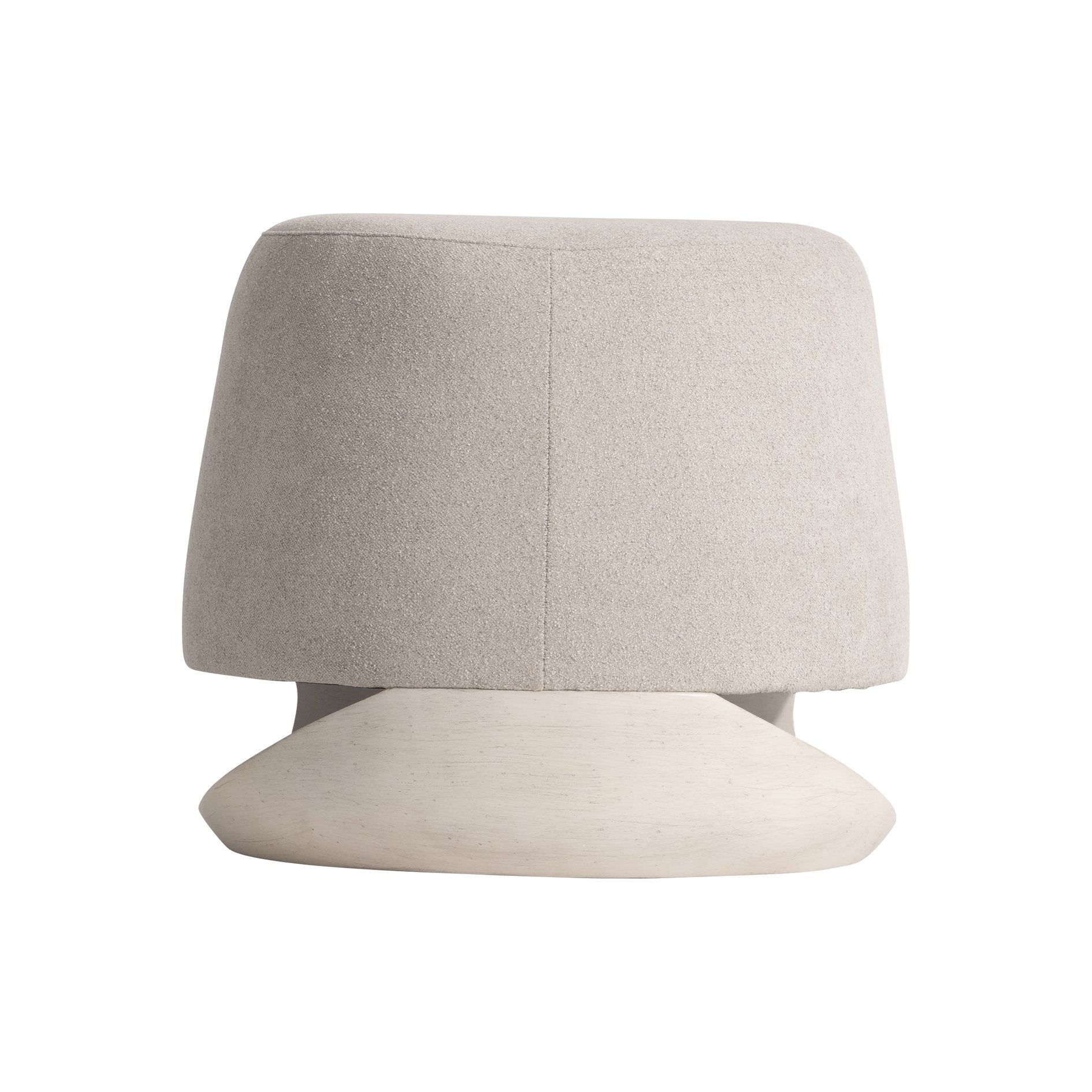 The Sereno round bench blends modern organic lines with playful elegance, making it a versatile accent for living rooms, bedrooms, or entryways. Its sculptural cast-resin base in a Lutra Faux Stone finish supports a comfortably upholstered seat, offering both visual interest and everyday functionality.