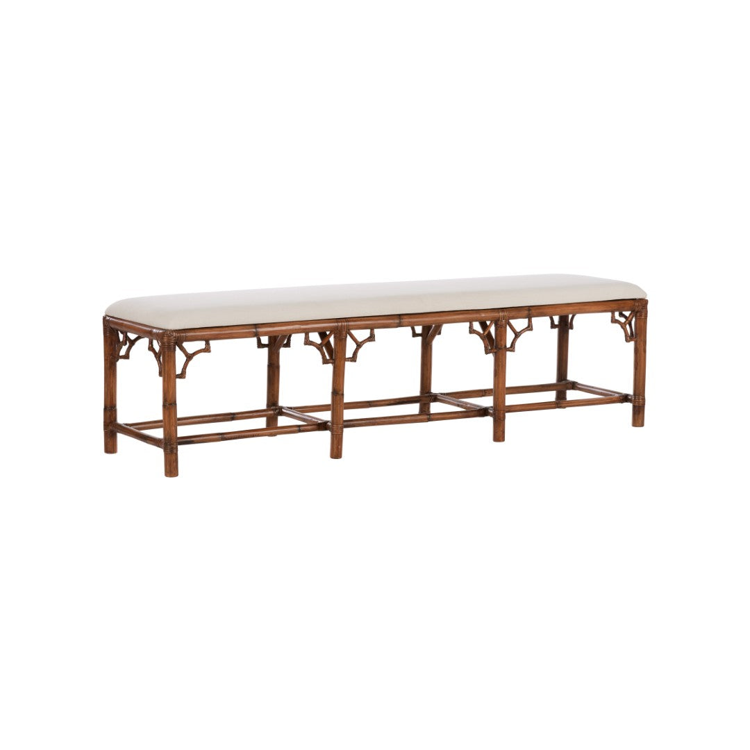 Elevate your entryway, seating area, or bedroom with this Chippendale-style bamboo bench that blends traditional lattice detailing with warm, natural materials. Expertly crafted from rattan and bamboo, it offers sturdy everyday seating while adding a refined, timeless accent to your décor.