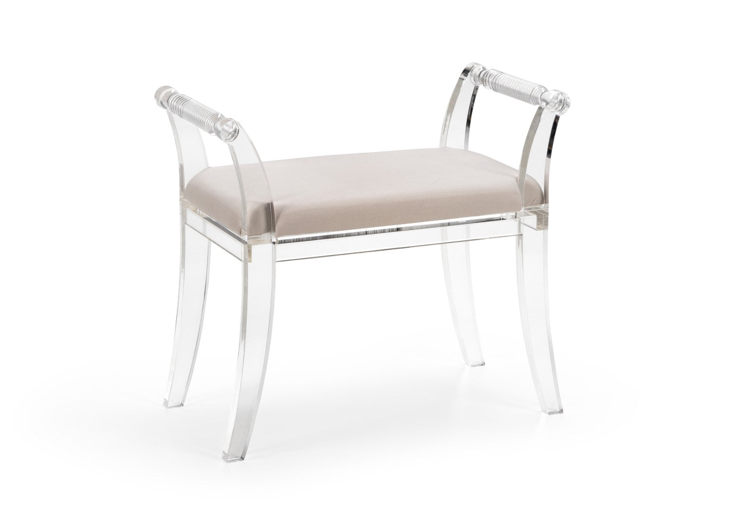Elevate your entryway or bedroom with this Neoclassic Acrylic Bench — a refined blend of classic Russian-inspired design and modern transparency. The clean acrylic frame creates a light, airy silhouette that complements traditional and contemporary interiors alike, while the muslin-covered seat cushion offers immediate comfort and the option to customize the upholstery to suit your décor.
