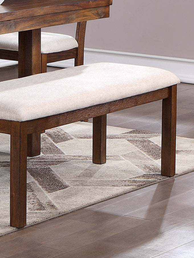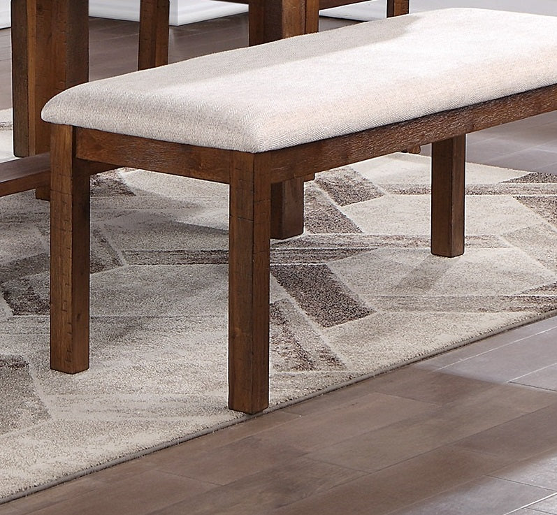 Bring warmth and contemporary flair to your dining space with this solid wood bench in a natural brown finish. Designed for comfort and everyday use, the bench pairs classic mid-century lines with a cushioned upholstered seat to create a versatile piece that works equally well at a dining table, in an entryway, or at the foot of a bed. Durable construction and a neutral palette ensure long-lasting style that complements a wide range of decor.