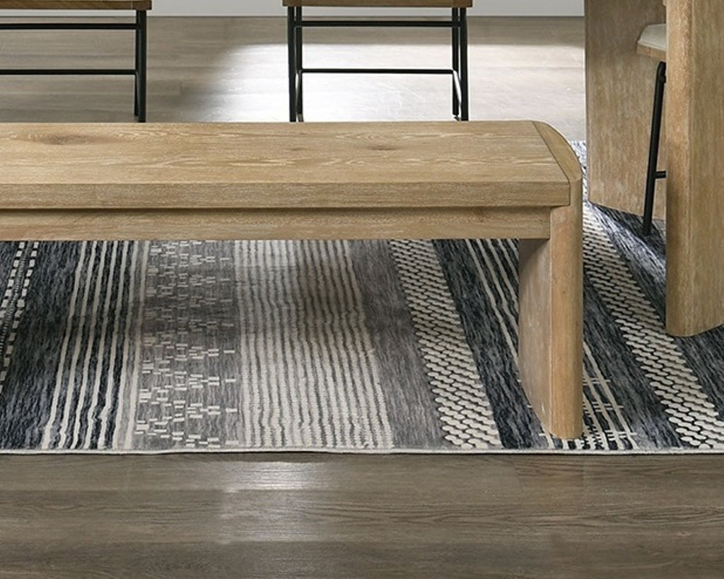 Enjoy versatile seating with this contemporary upholstered bench, designed to blend seamlessly with modern and transitional dining spaces. Its soft rounded corners and light oak-tone finish offer a warm, neutral look while the upholstered seat provides comfortable, long-lasting use. Compact yet spacious, this bench is ideal for dining rooms, entryways, or at the foot of a bed.