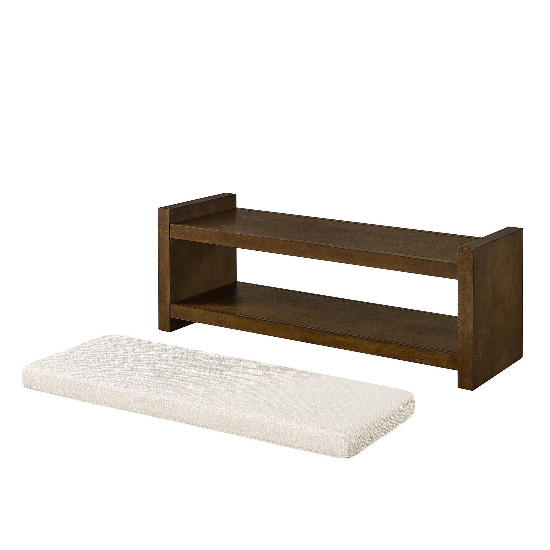 Add a refined, multifunctional accent piece to your home with this modern transitional bench — perfect for entryways, bedrooms, living rooms, or home offices. Its clean lines and neutral ivory linen upholstery create a versatile look, while the padded removable cushion and lower shelf offer comfortable seating plus convenient storage for shoes and everyday items.