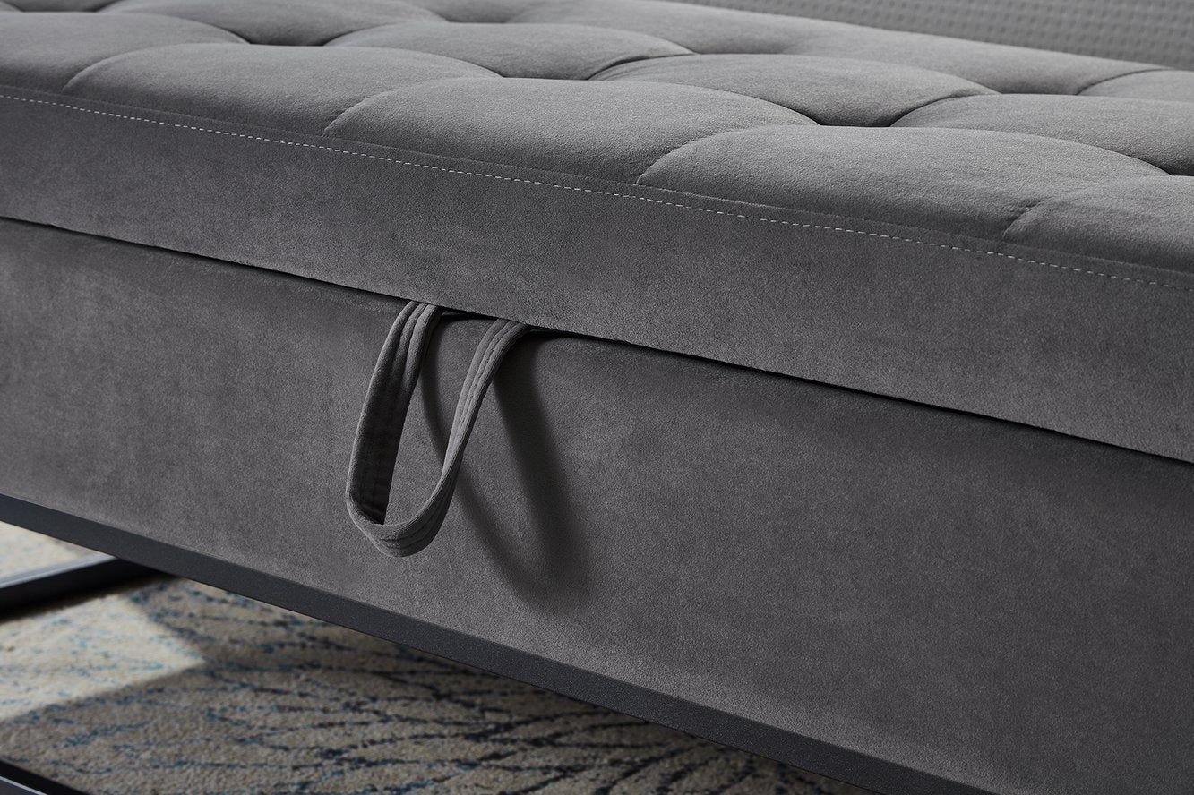- CONTEMPORARY DESIGN: Button tufting design for the top,smooth and soft velvet upholstery plus sturdy metal base, this storage ottoman offers the look, feel, and design of a truly contemporary piece. With a minimalistic yet refined structure, this piece brings out a simplistic style that emphasizes comfort and functionality.