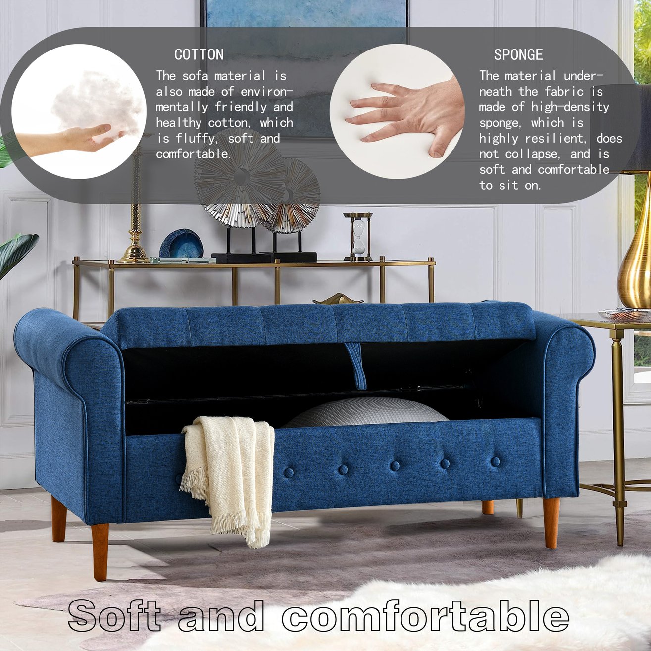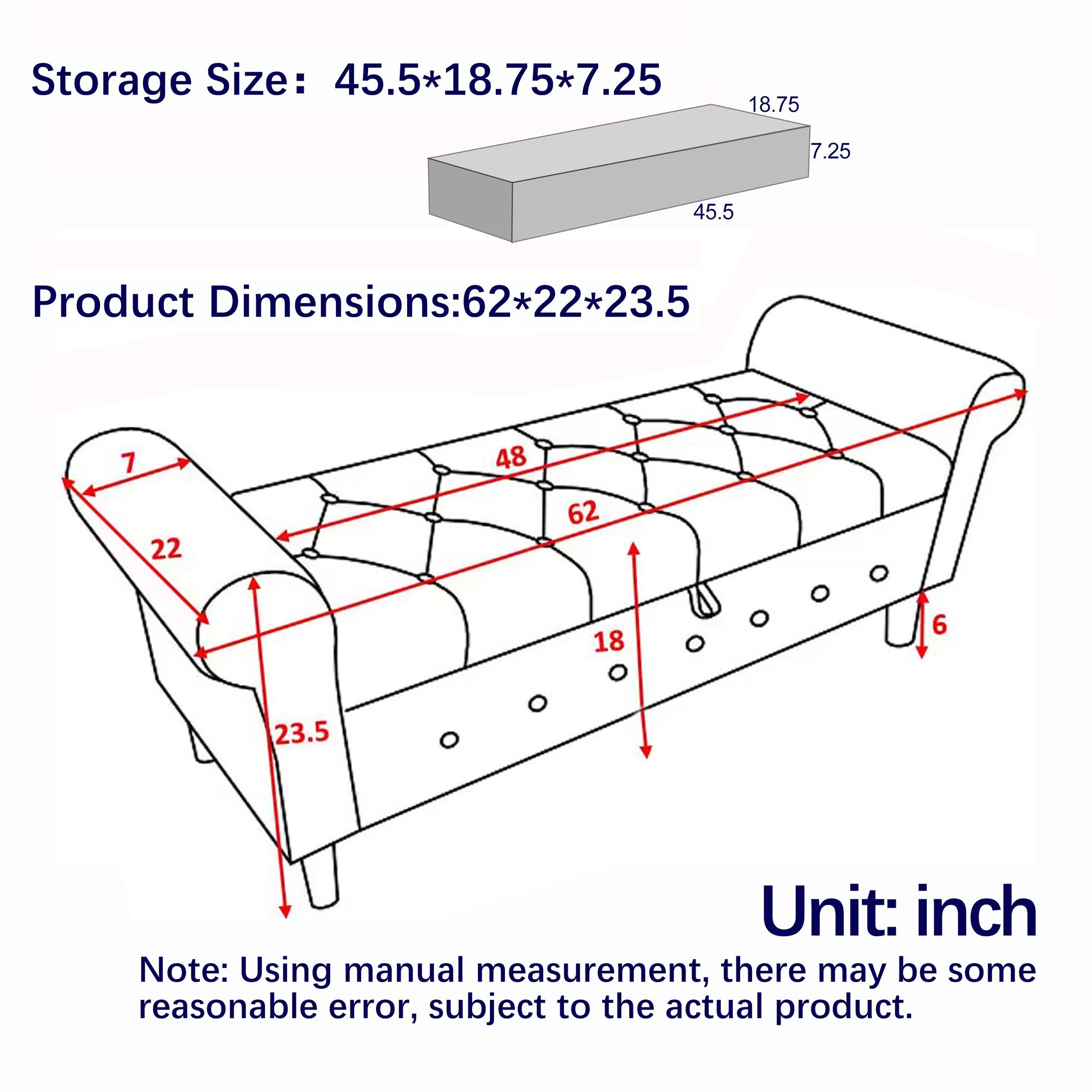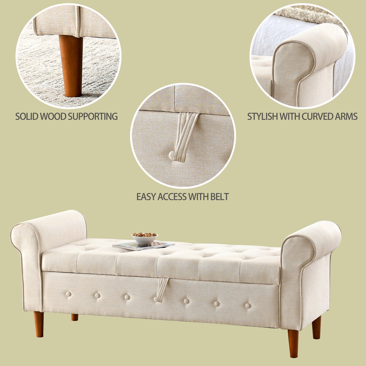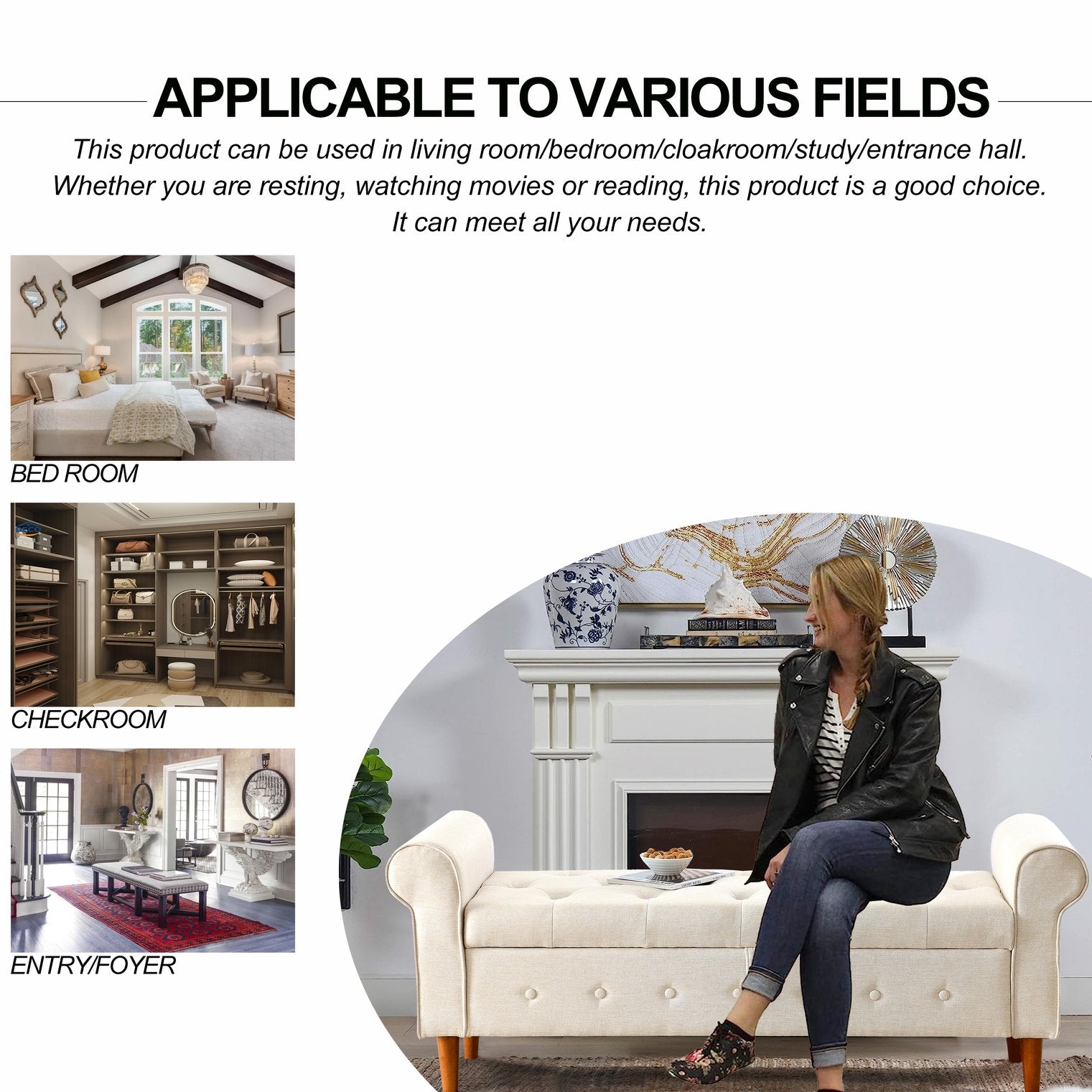 Enhance your bedroom, entryway, or living area with this modern tufted storage bench—a stylish and functional piece that combines elegant rolled-arm accents, soft canvas upholstery, and practical hidden storage. Designed for comfort and everyday use, it offers durable construction and a clean contemporary silhouette that complements a wide range of decor styles.