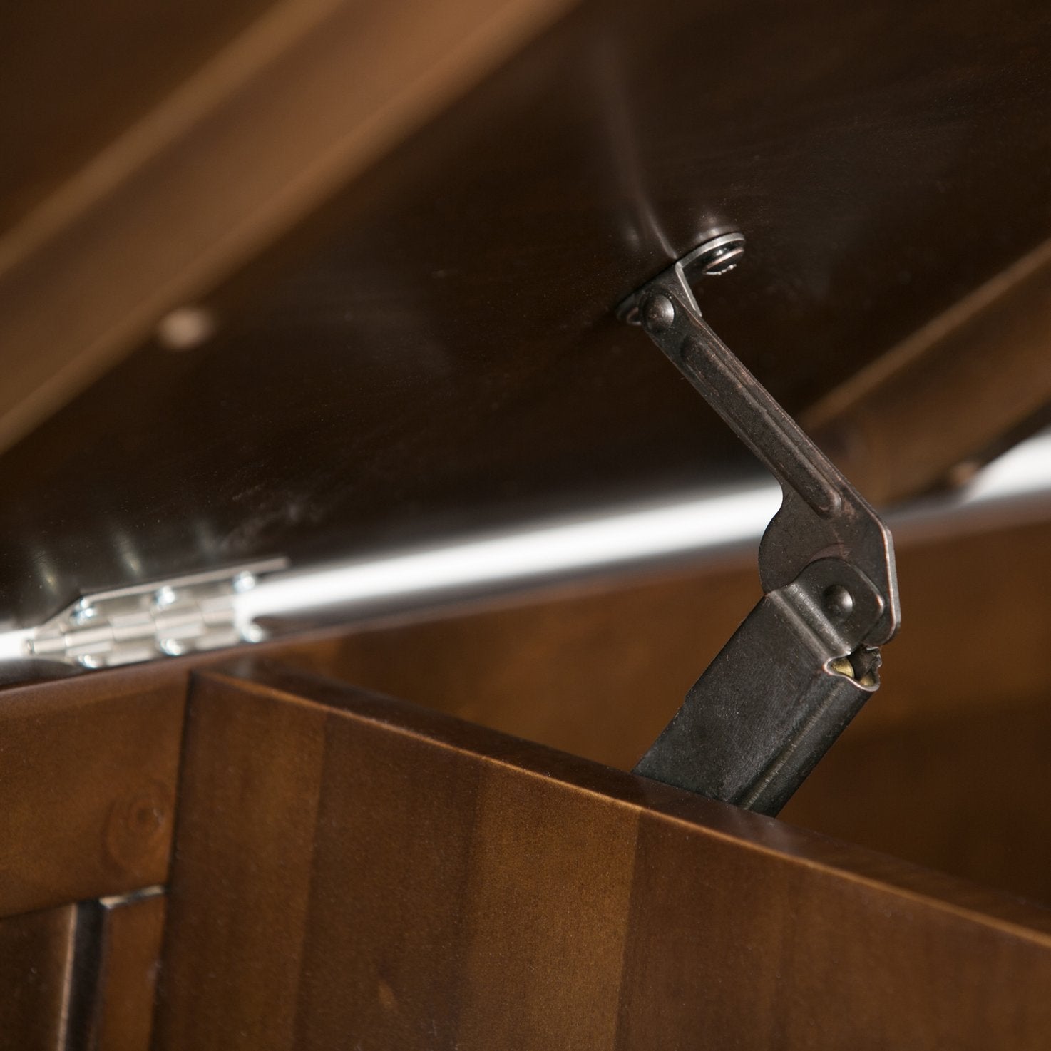 Bring organization and rustic charm to your entryway with this handcrafted storage bench. Built from high-quality solid wood and finished in a medium rustic brown stain, it seats two comfortably and provides generous hidden storage—perfect for shoes, blankets, or seasonal gear. Thoughtful details like shaker-style fronts, a ladder-patterned back, and safety-hinged lift-top make it both attractive and practical for everyday use.