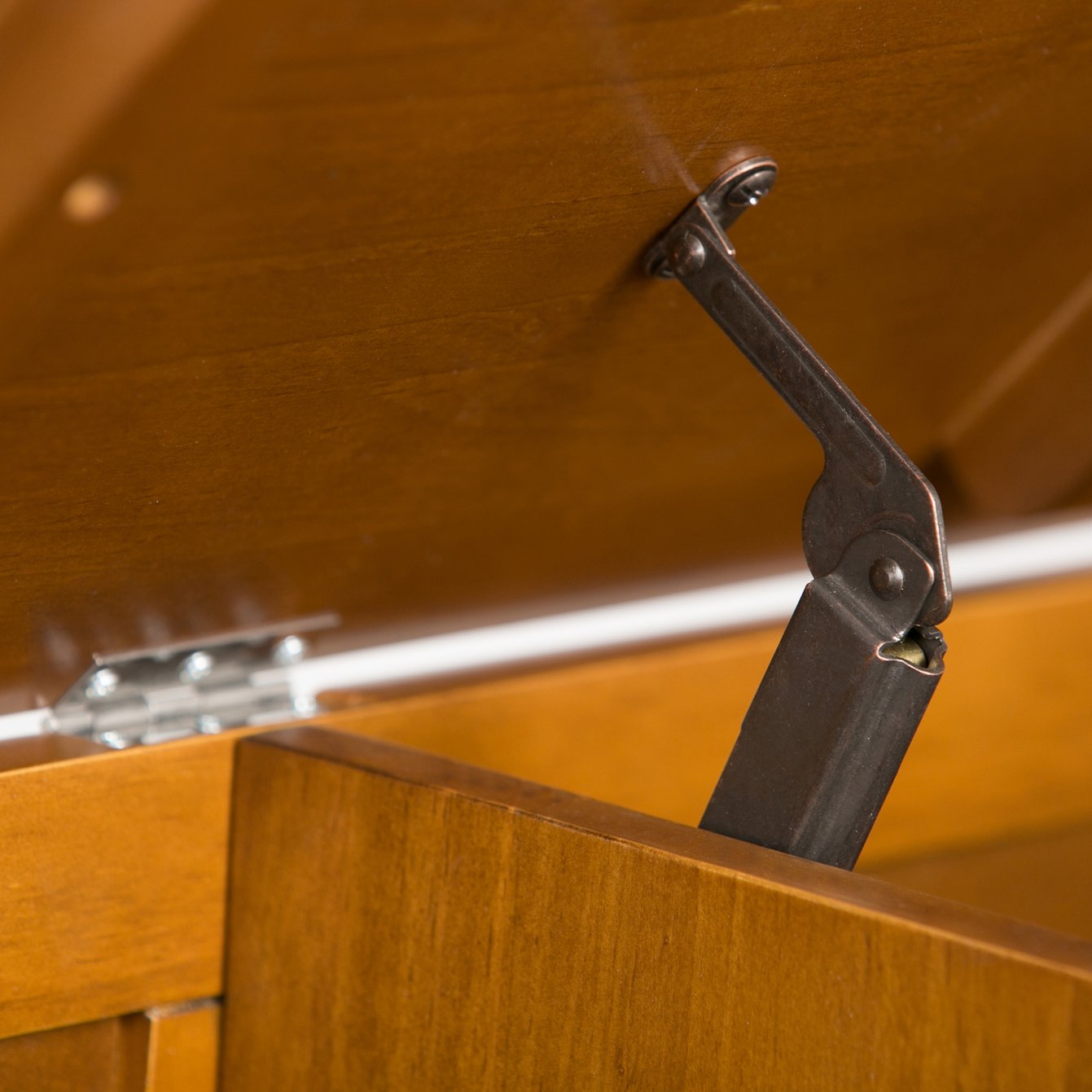 - Storage: Lift-up seat with safety hinges reveals two large internal compartments for shoes, blankets, or seasonal items.