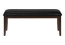 - Stylish and durably designed 48" rectangular bench with a dark brown solid wood frame and thick cushioned, easy to clean black leather-look upholstered seat.
