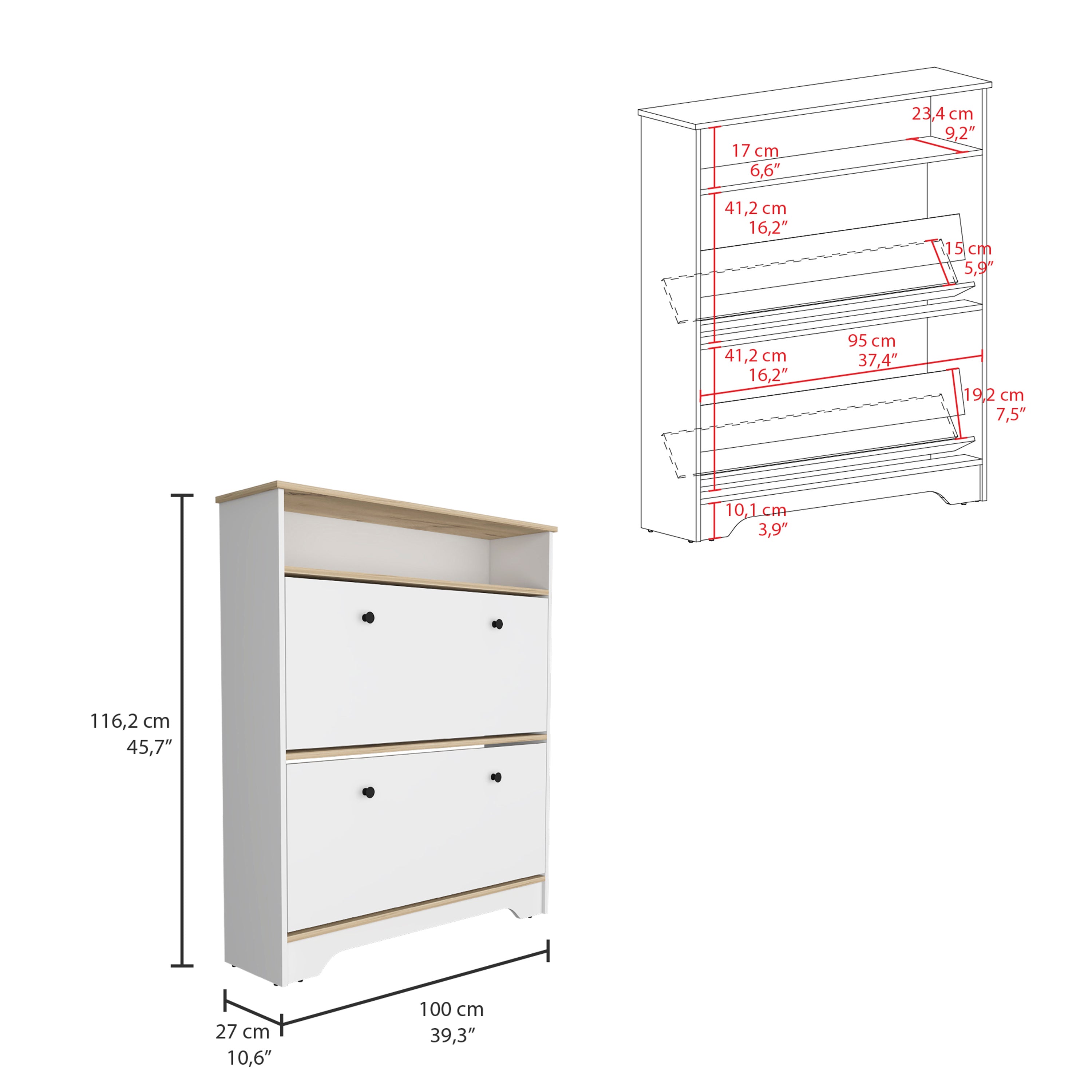 Keep your entryway neat and stylish with this compact, versatile shoe rack that blends light oak warmth with clean white accents. Designed for everyday use, it offers hidden storage for shoes, a display shelf for decor, and a sturdy top surface for lamps or photos—making it an ideal solution for small spaces, garages, or hallways.