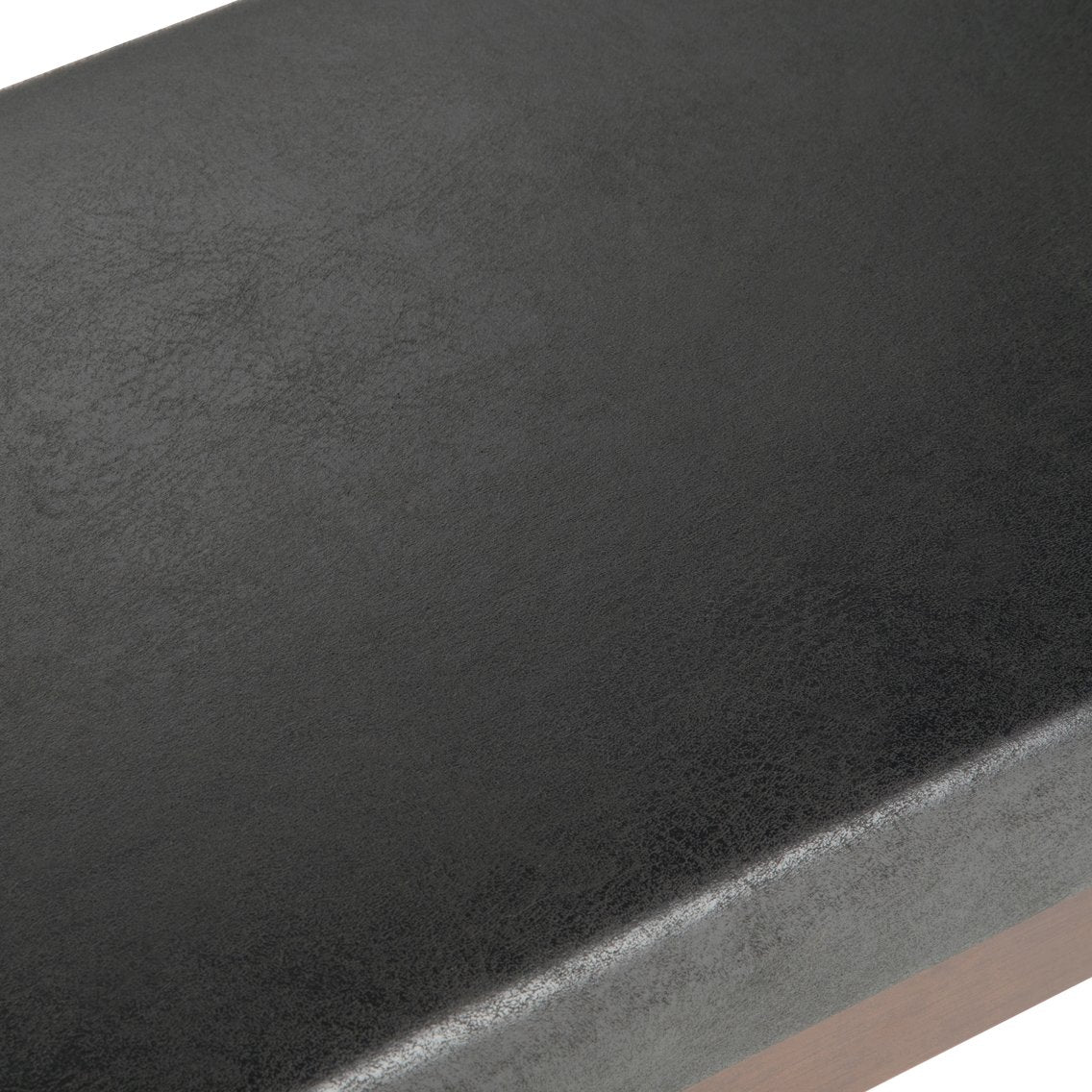 - Upholstered with a durable Distressed Black Vegan Faux Leather