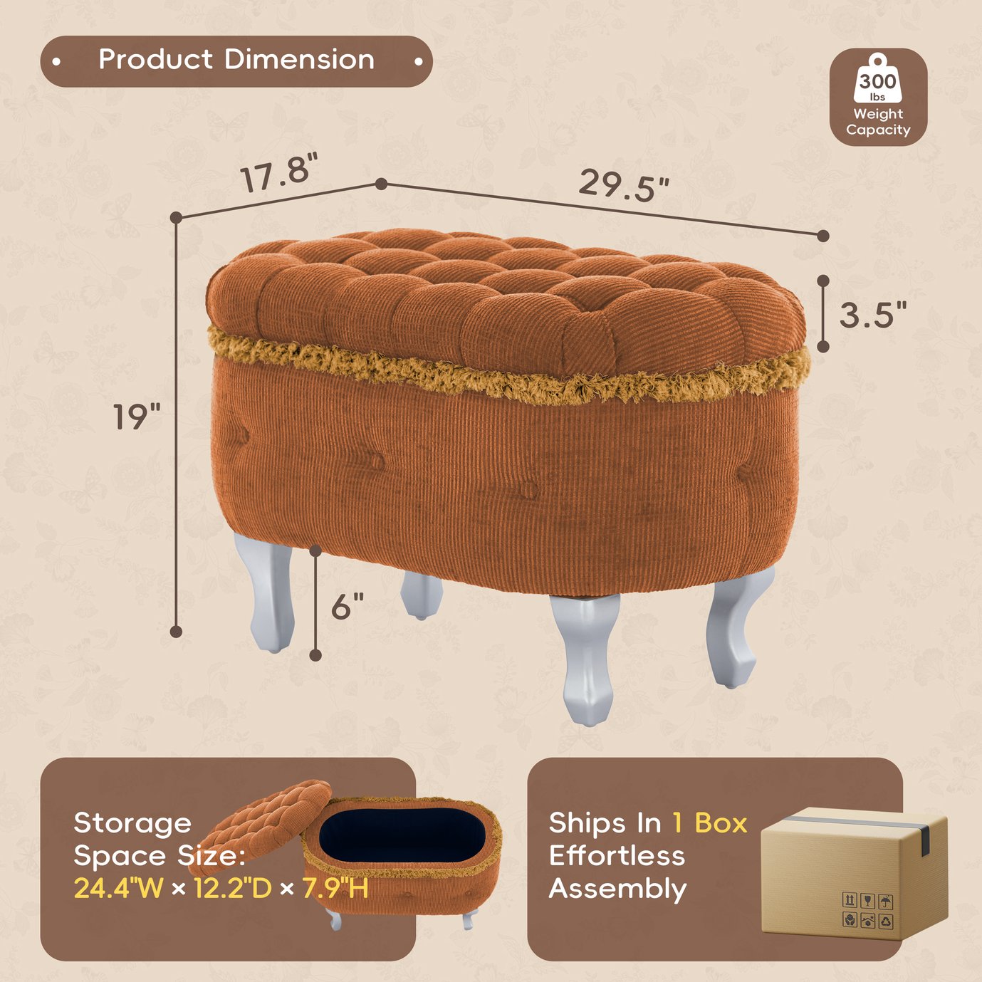 - Modern Fashion Design: The elegant button tufting adds a touch of delicacy to the storage bench , which is highly hierarchical and three-dimensional visually. The circle of tassel decoration on the periphery is the finishing touch. The tassels sway gently with the wind, adding a flexible and retro charm to the bedroom bench, making it become soft and artistic. The bench perfectly matches the overall retro style of the bedroom and instantly enhances the delicacy of the space.