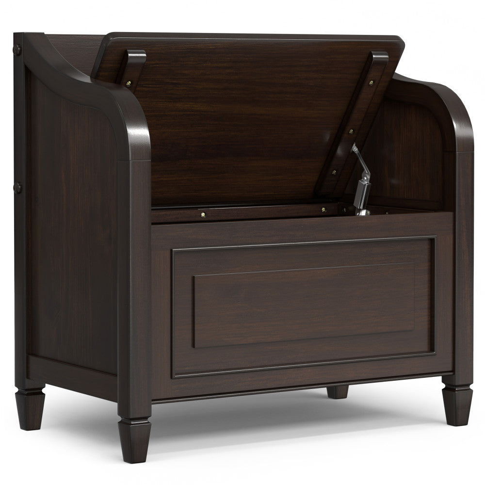 A compact, timeless storage bench that blends classic British Colonial details with practical function—perfect for entryways, mudrooms, bedrooms, or living spaces. Handcrafted from solid wood and finished in a rich Chestnut tone, this piece offers comfortable seating for one and a generous hidden compartment to keep shoes, blankets, or essentials neatly tucked away.