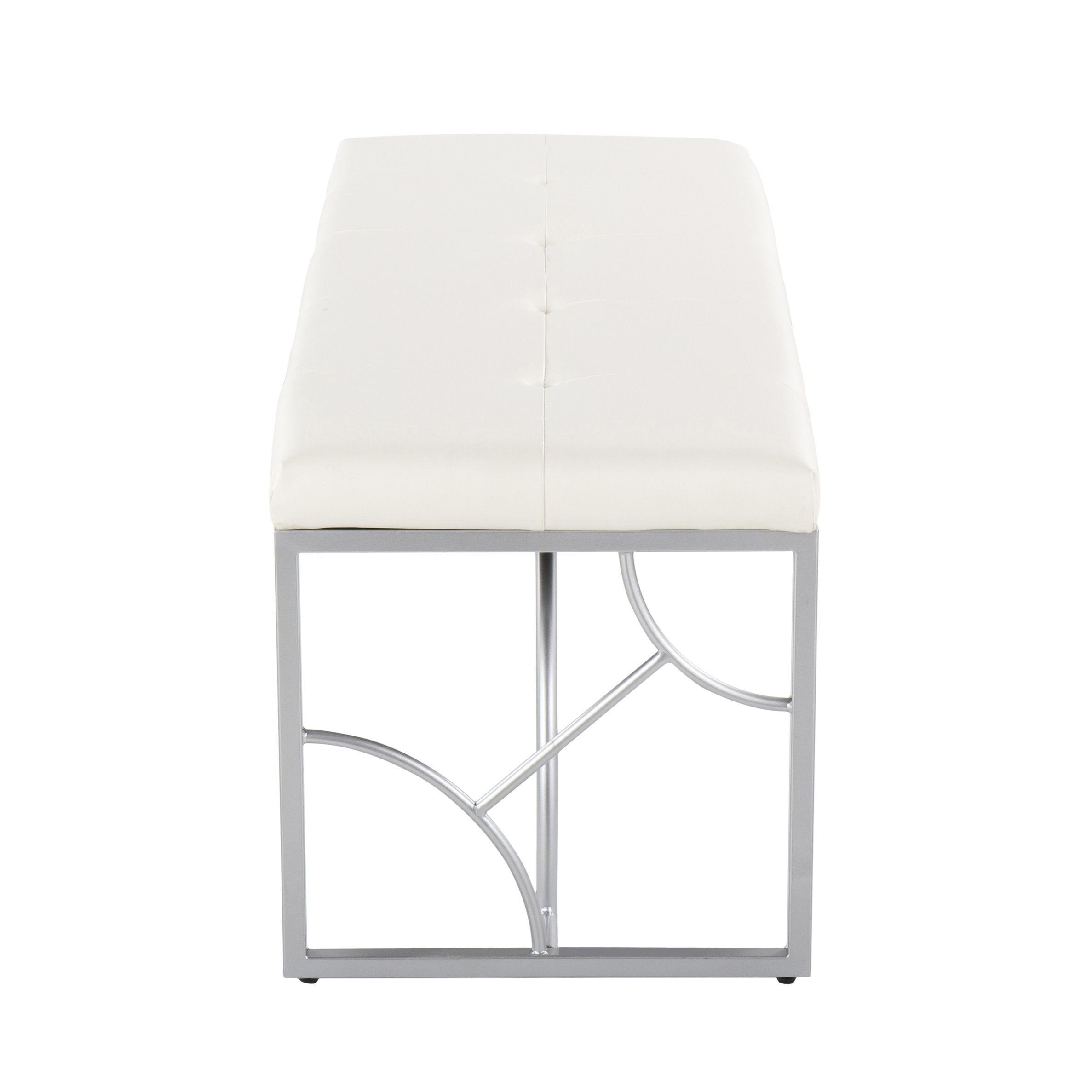 - With its pleasant design and modern lines, the Constellation Bench by LumiSource is a unique statement in any space. Featuring a geometric gold or silver metal frame and a plush padded upholstered cushion for added comfort. Modern elegance at its finest, the Constellation Bench will look great in an entryway, at the end of a bed, or paired with a dining table.