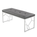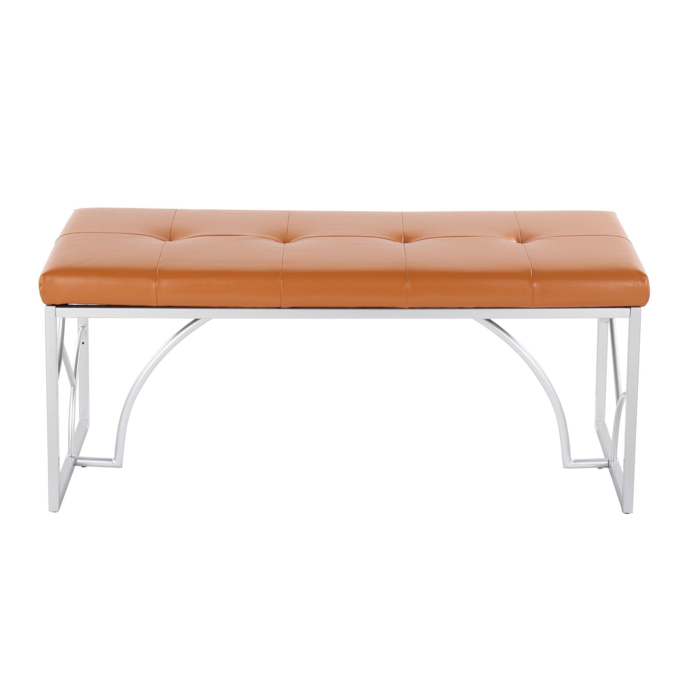 Elevate your entryway, bedroom, or dining area with this contemporary bench that blends modern geometry and comfortable seating. The Constellation Bench pairs a striking silver metal frame with camel faux leather upholstery to create a refined focal point that seats two and complements a variety of interiors.