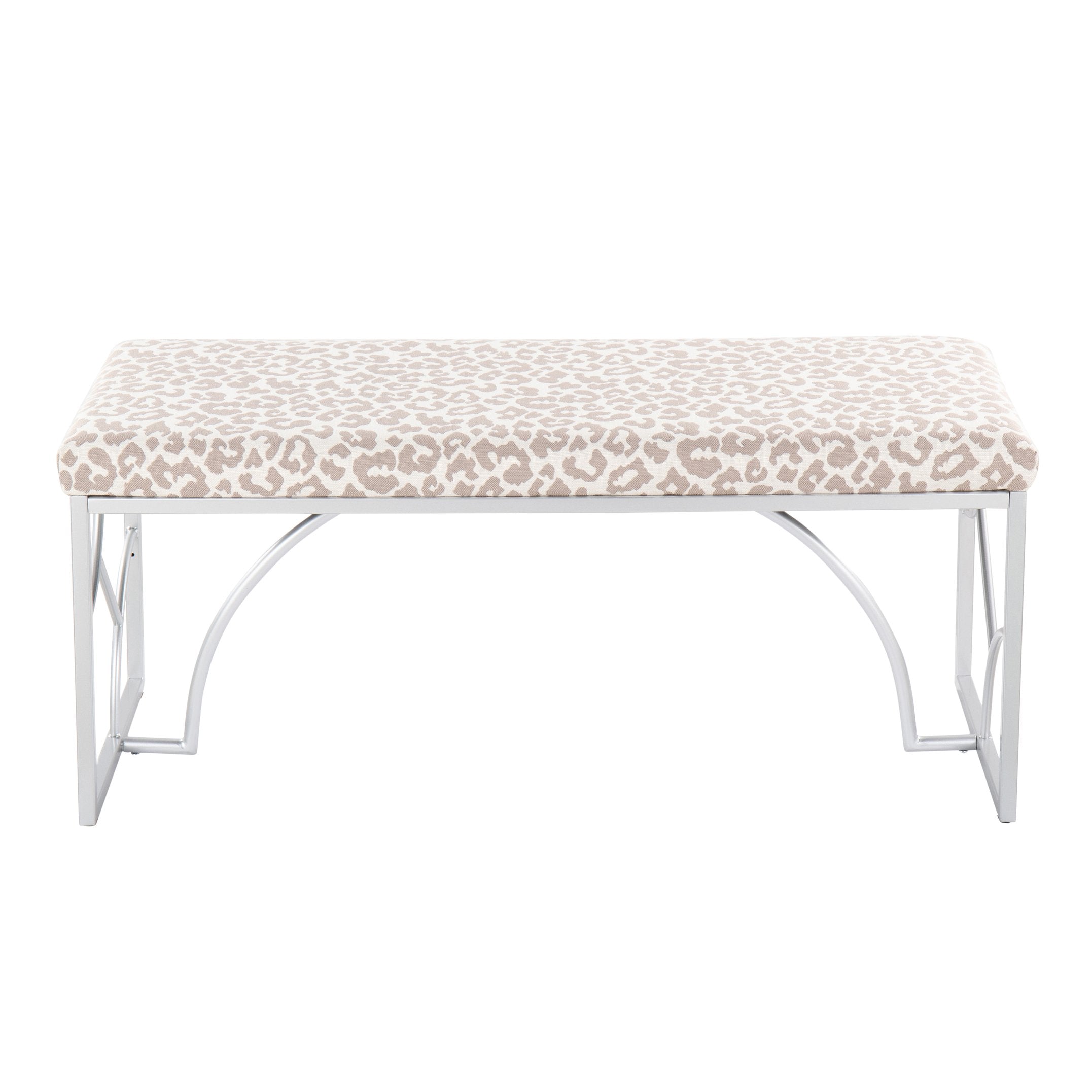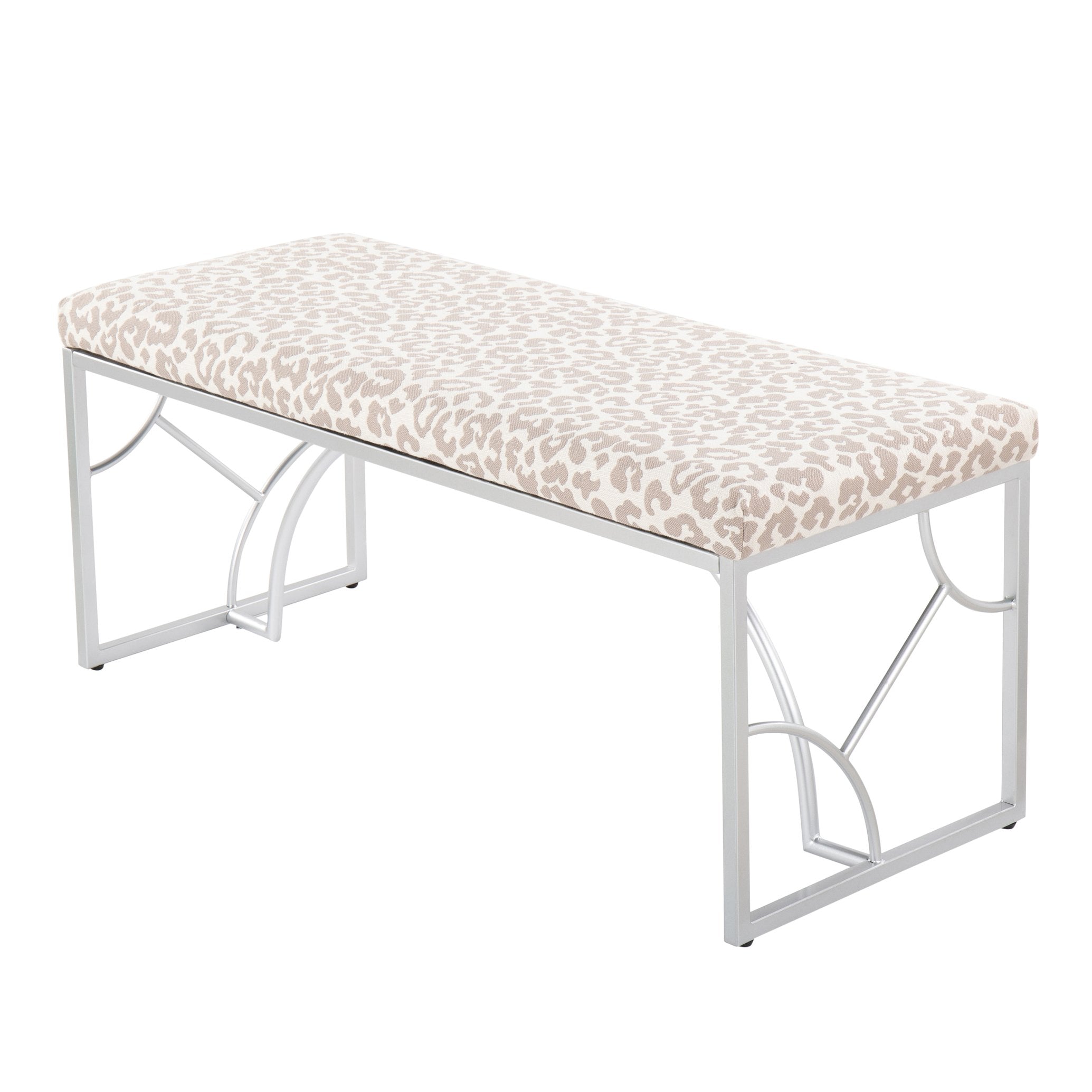 Make a striking statement in your entryway, bedroom, or dining area with this contemporary bench that blends modern geometry and plush comfort. The grey leopard fabric adds subtle pattern and texture, while the silver metal frame provides sculptural support and a sleek metallic accent for modern interiors.