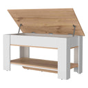 - Liftable top storage compartment: 37.3" W x 20" D x 5" H — ideal for storing books, notebooks, linens, or media