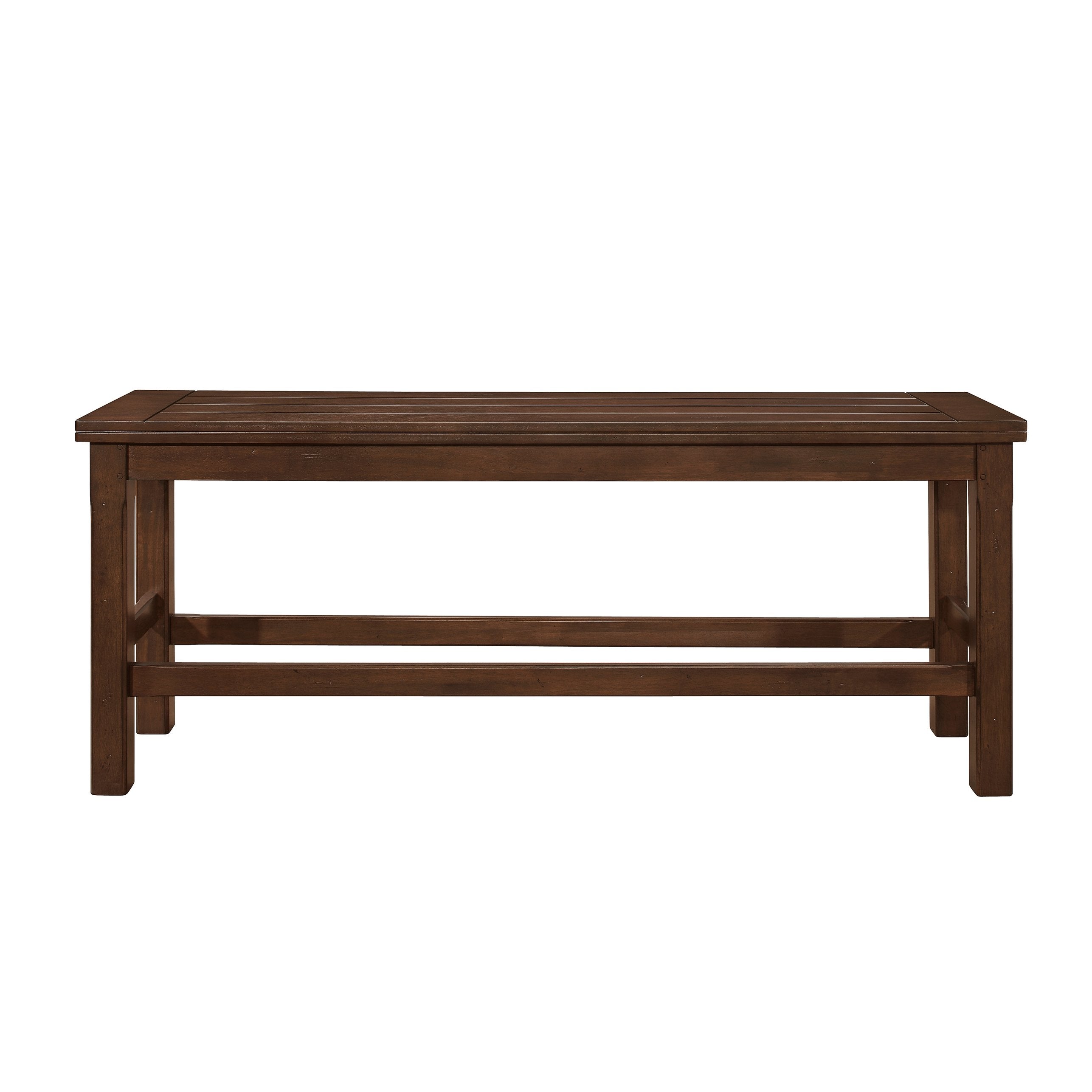 Add warm, transitional style and practical seating to your kitchen or dining area with this burnished dark brown counter-height bench from the Schleiger Collection. Thoughtfully designed for versatility, it pairs easily with counter-height tables or creates a cohesive look when combined with other pieces from the collection. The bench delivers bold accenting, durable construction, and convenient seating for multiple guests.