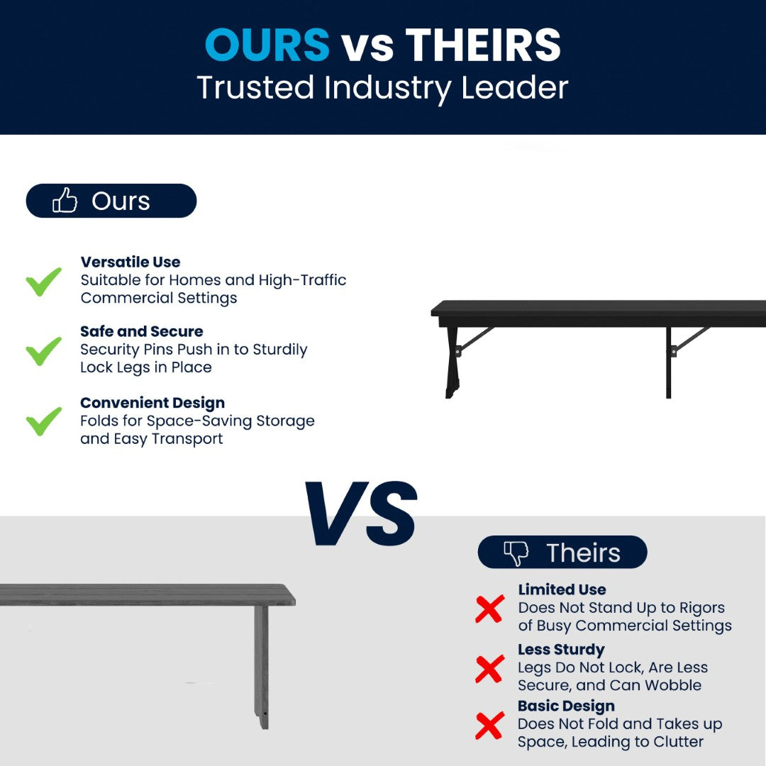 - 8' x 12" Commercial Grade Farmhouse Folding Bench for Homes, Restaurants, Bars, Bistros