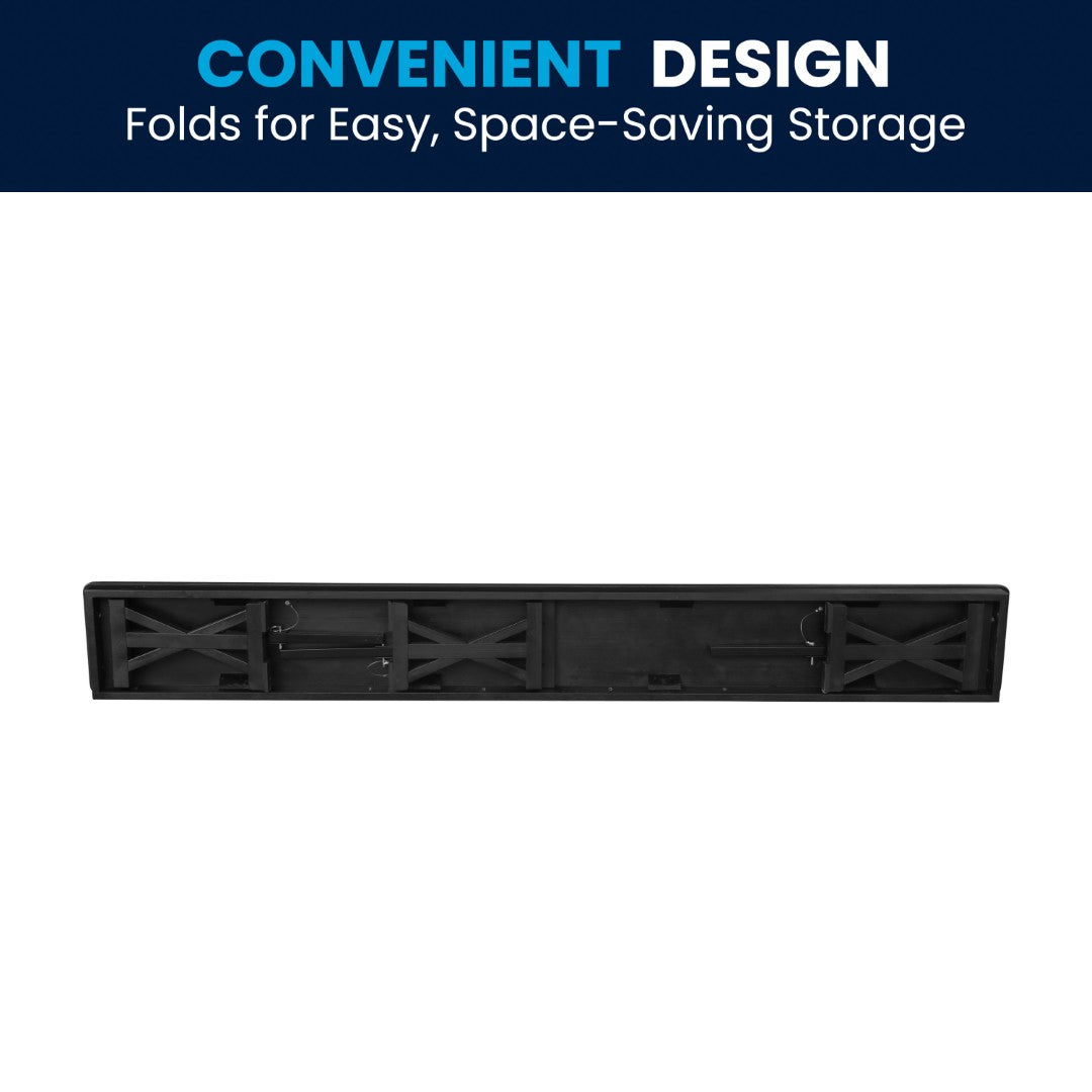 - Foldable Design: Foldable locking X-legs with .78" thick crossmembers; push-in security pins lock legs for use and remove easily for folding, transport, and space-saving storage.
