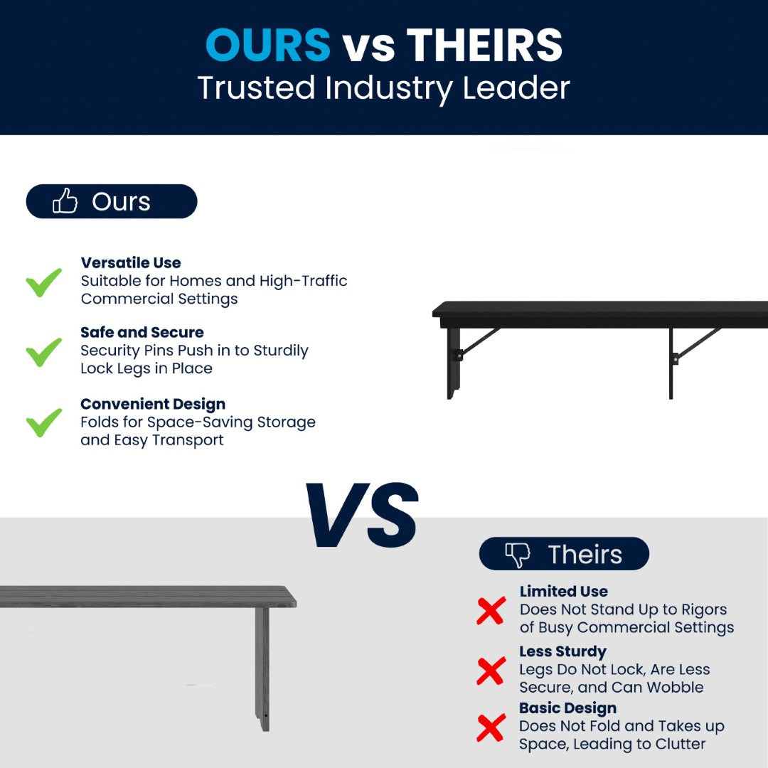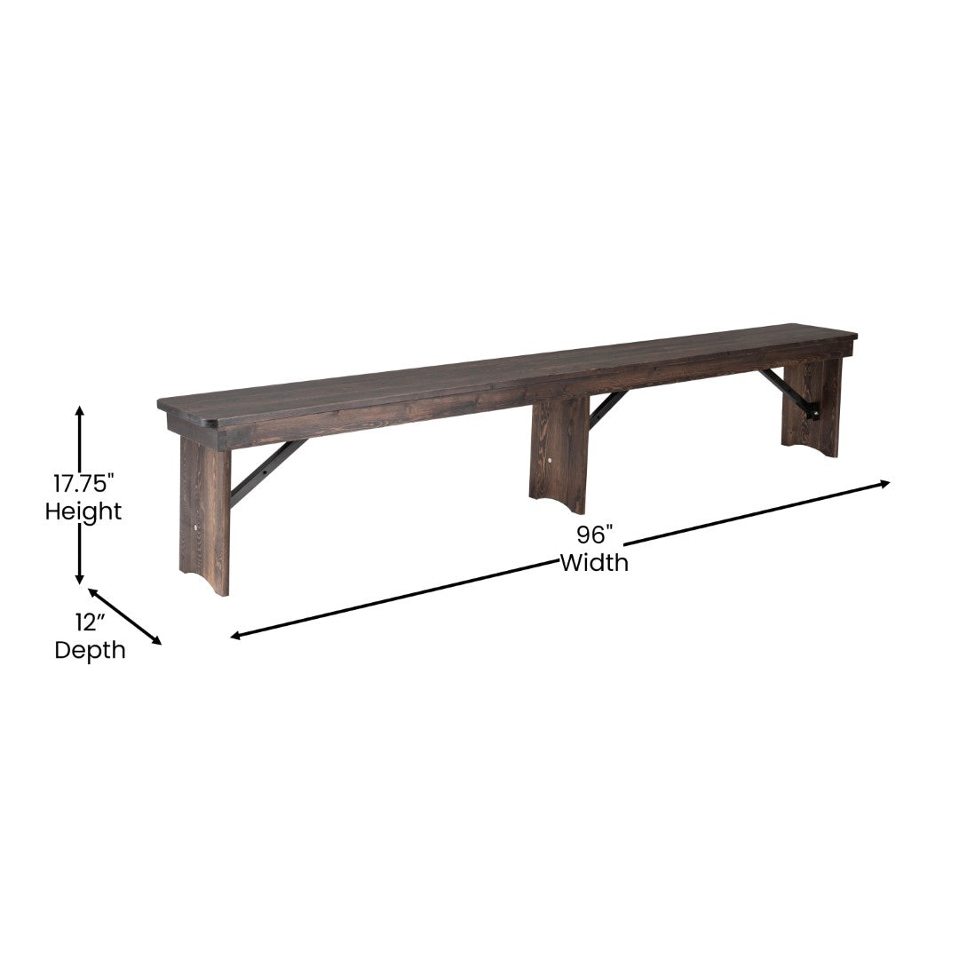 - 8' x 12" Commercial Grade Farmhouse Folding Bench for Homes, Restaurants, Bars, Bistros
