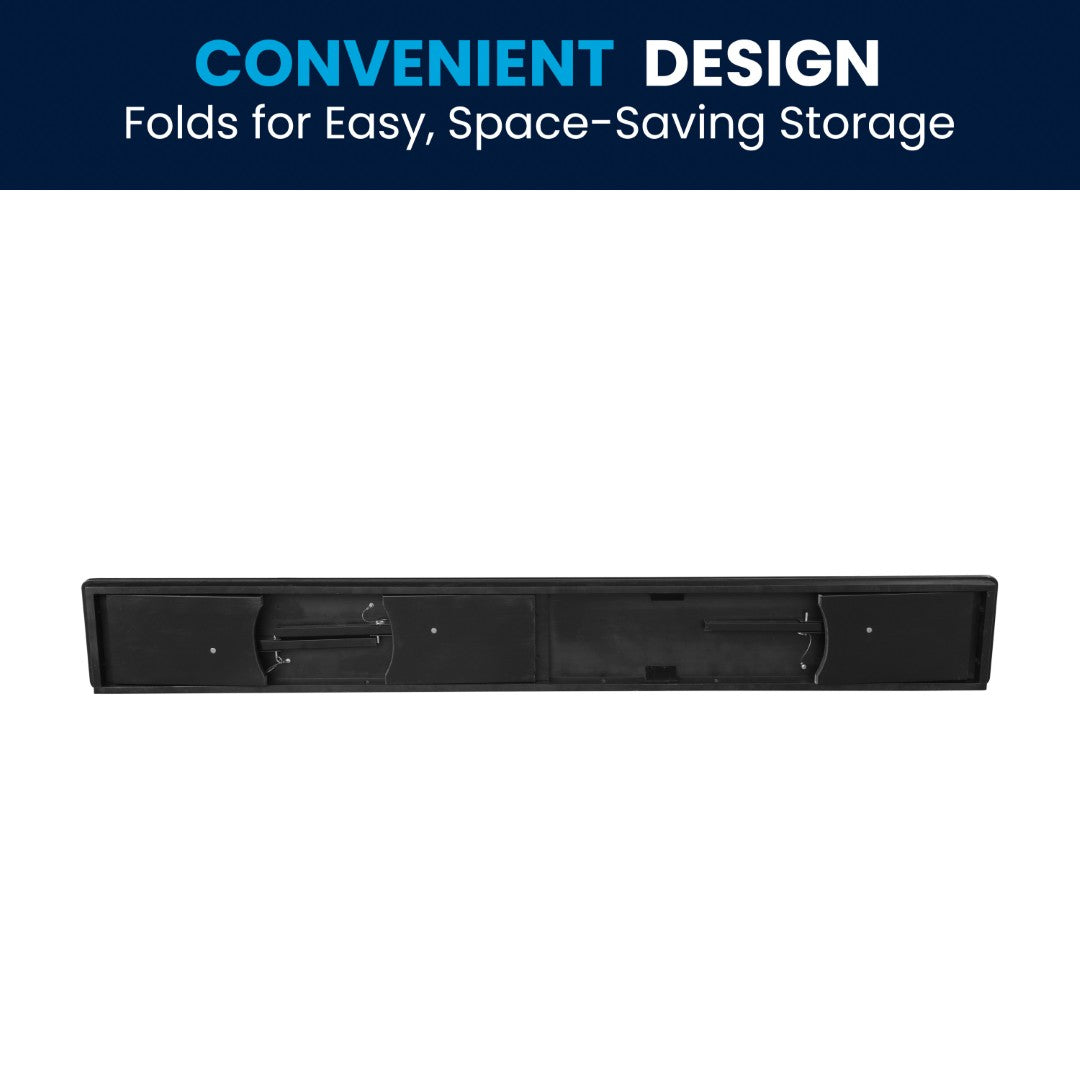 - Foldable locking legs: .78" thick legs lock with push-in security pins for safe use; remove pins to fold for transport and compact storage