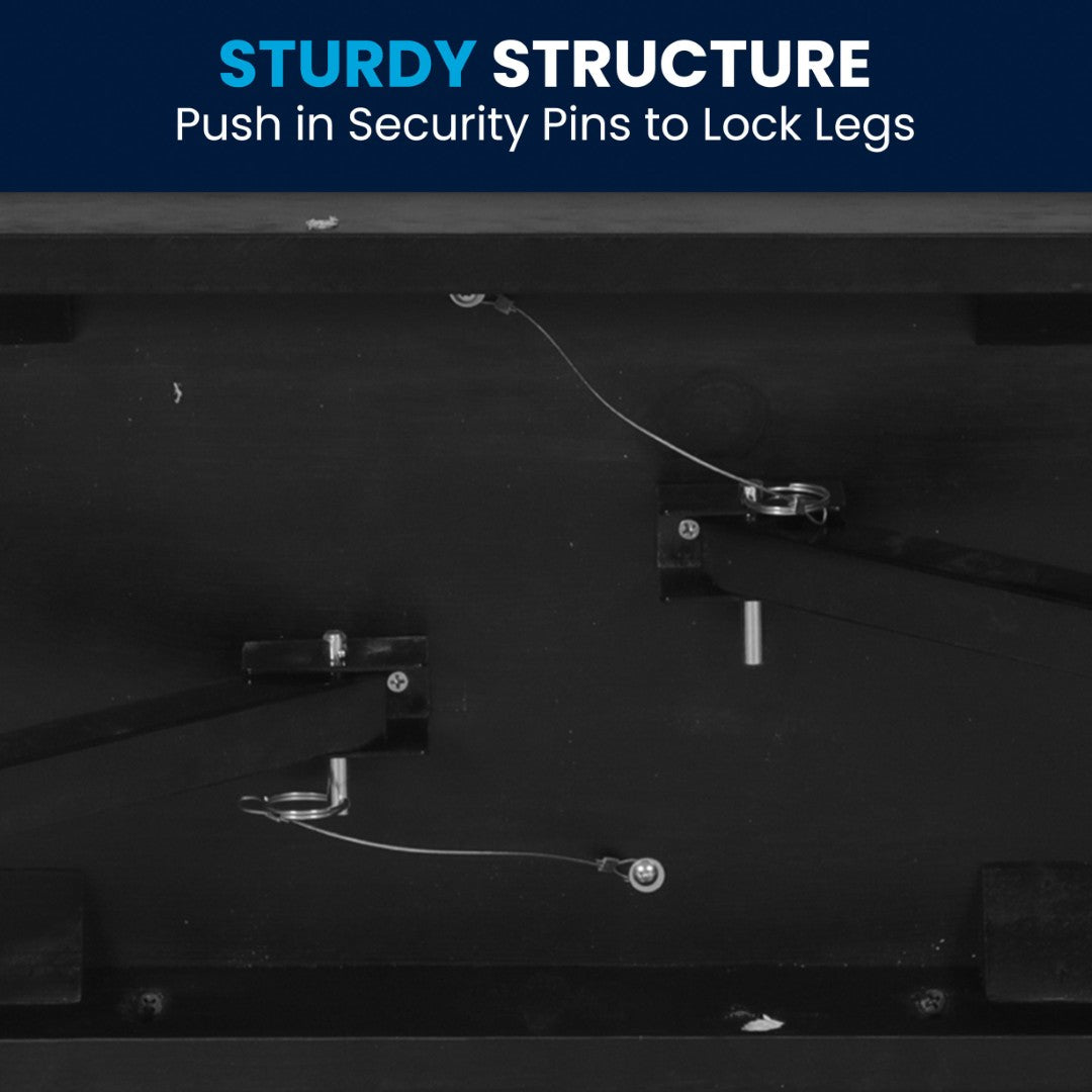 - Push in Security Pins to Lock .78" Thick Legs, Remove to Fold for Transport, Space-Saving Storage