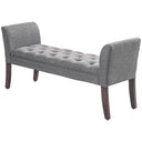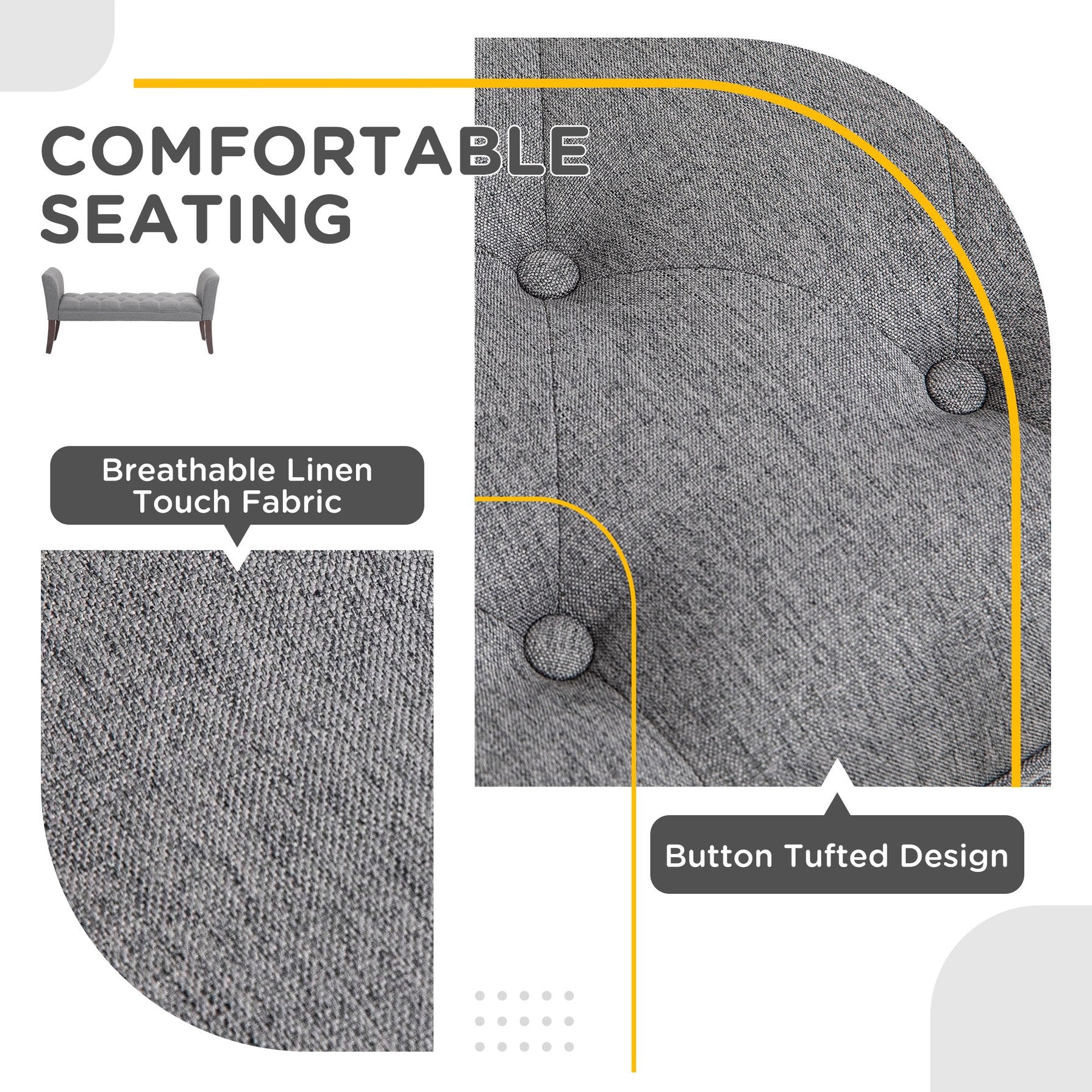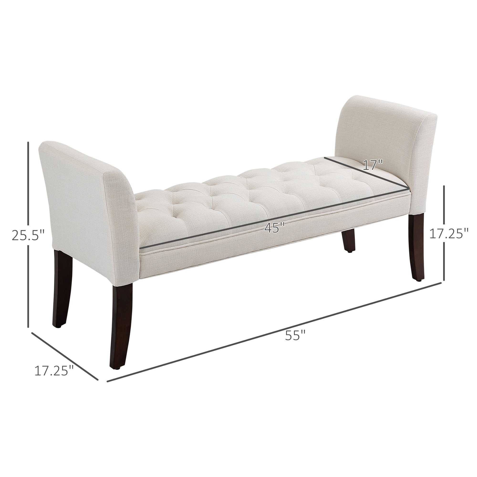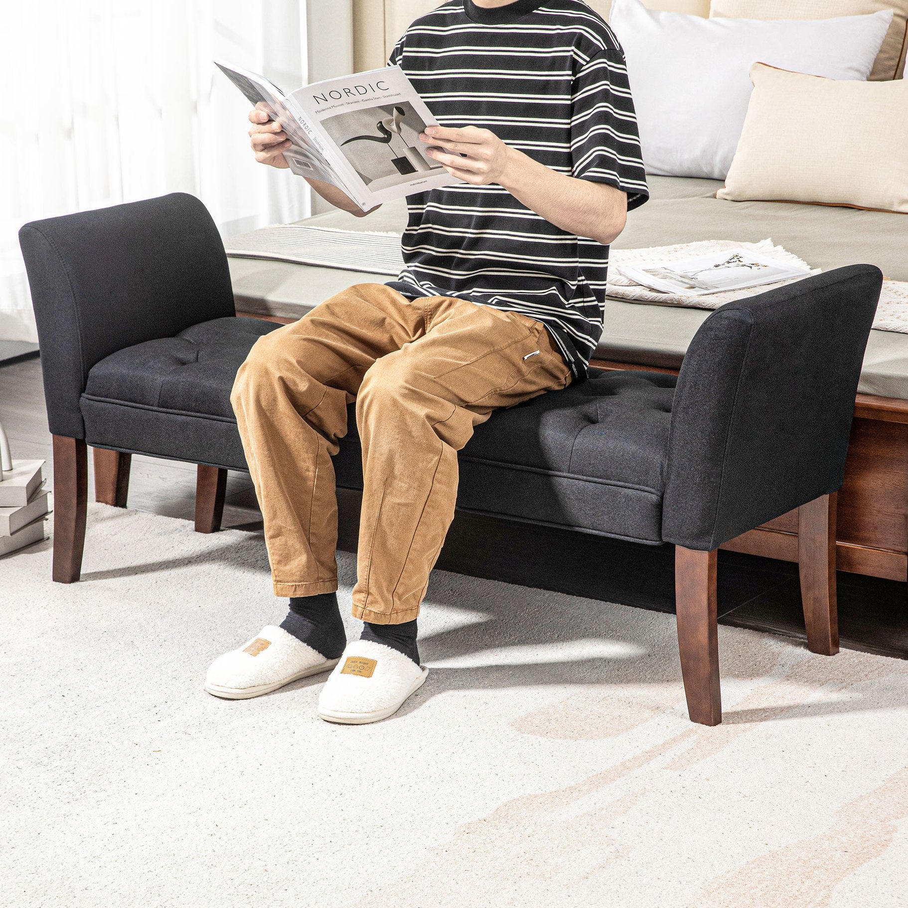 Give your bedroom, entryway, or living room a touch of classic elegance and practical seating with this button-tufted upholstered bench. Its soft arms, linen-touch fabric, and solid wood legs combine comfort and durability for everyday use — perfect for putting on shoes, extra guest seating, or as an attractive end-of-bed accent.