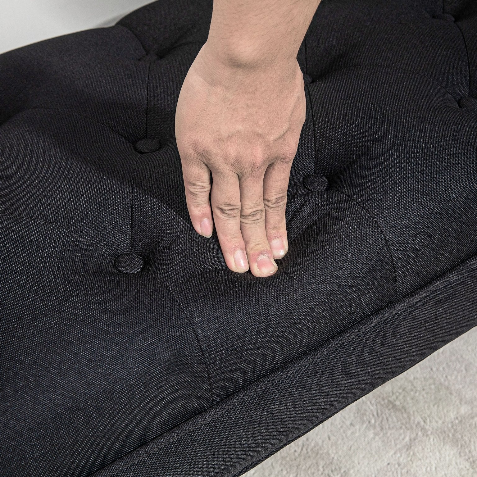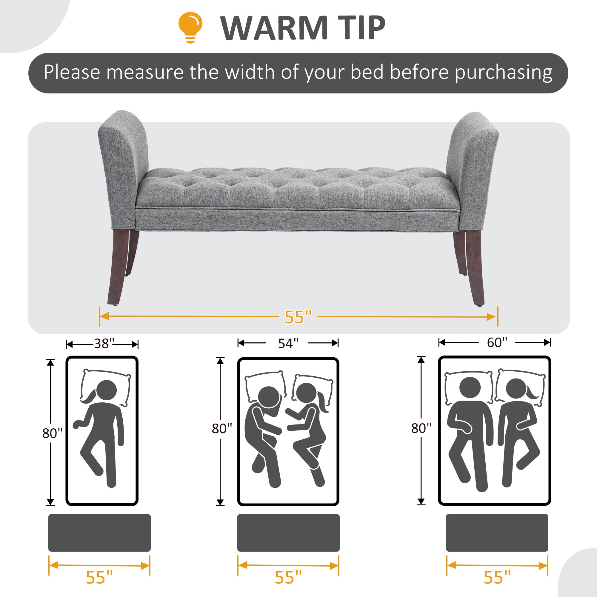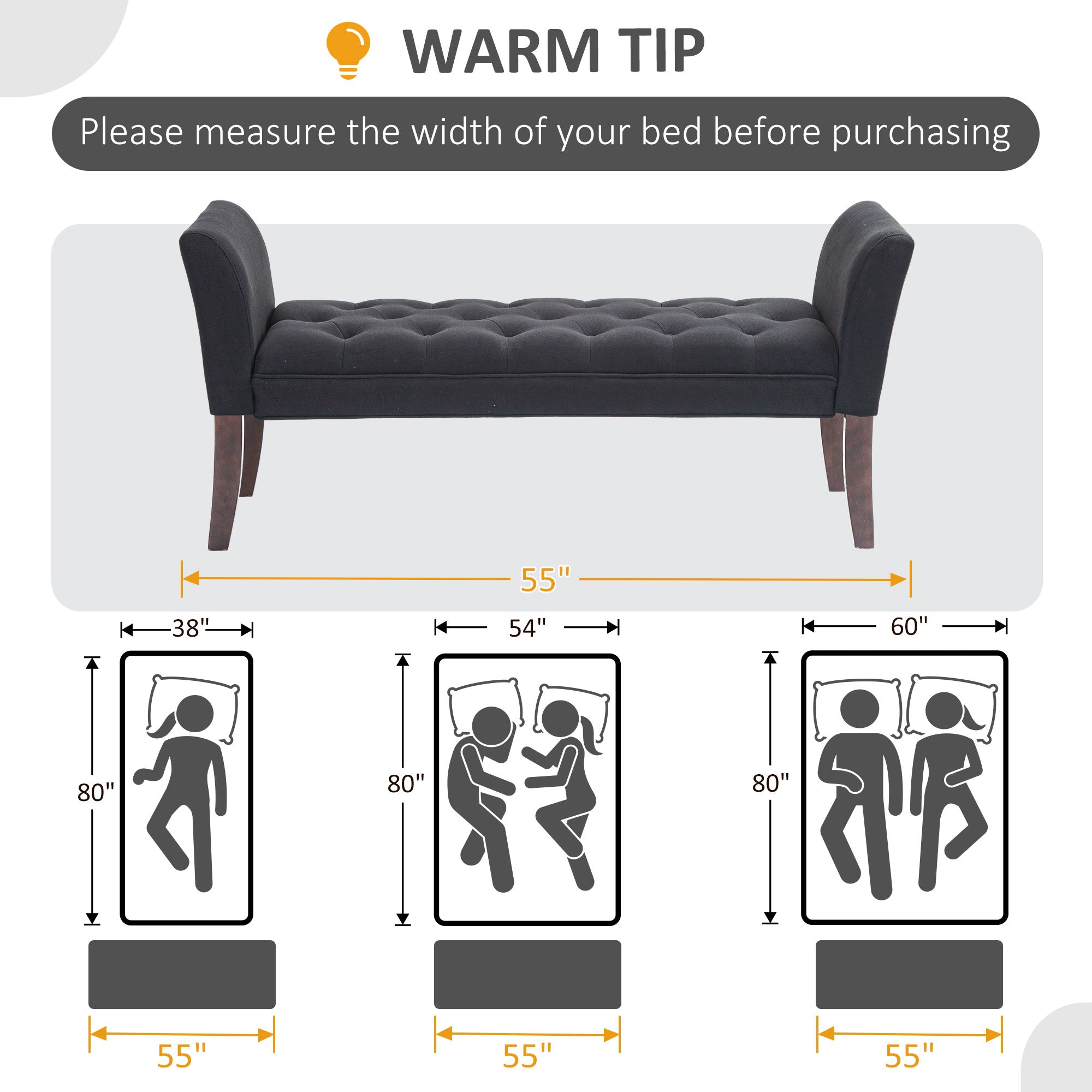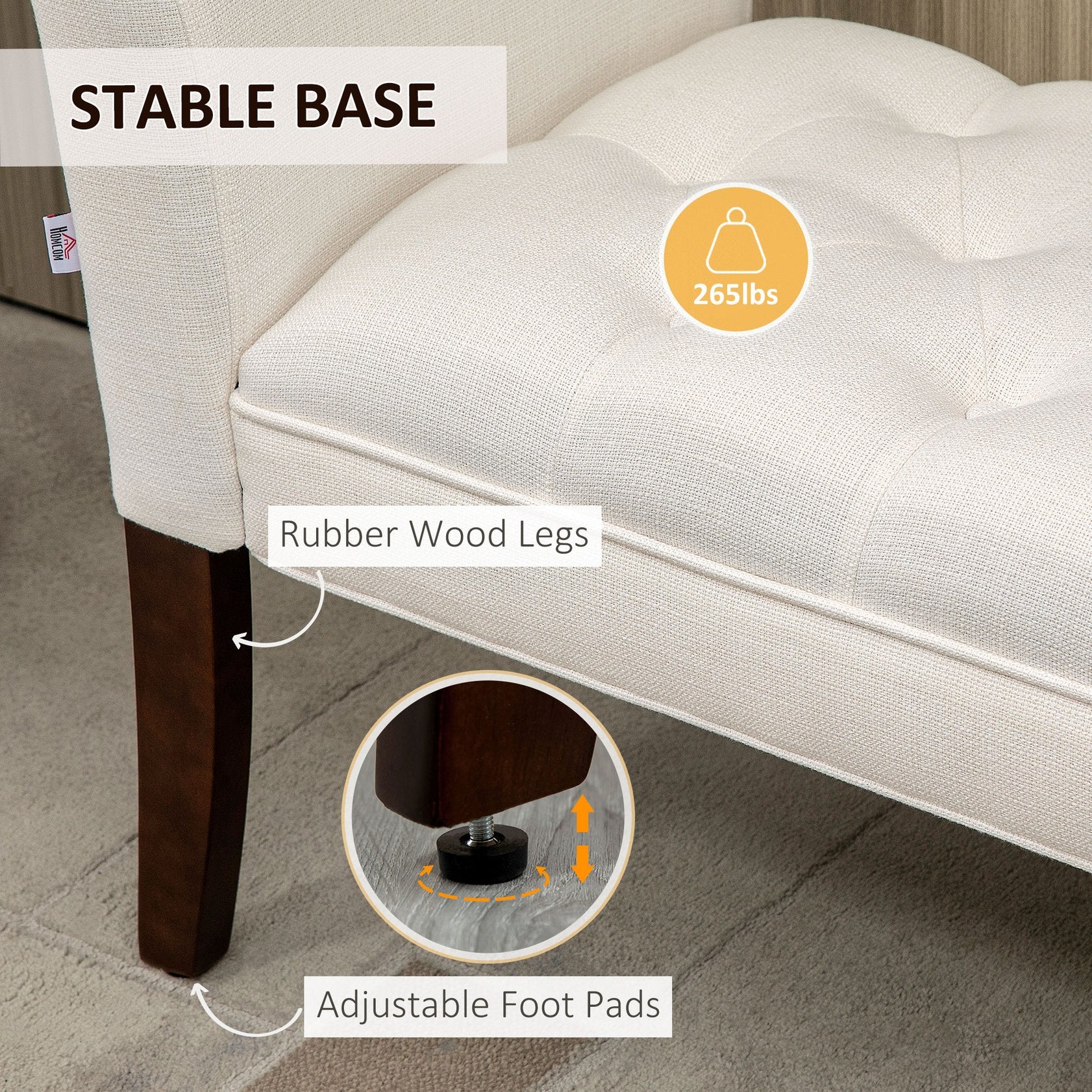 Give your bedroom, entryway, or living room a touch of classic elegance and practical seating with this button-tufted upholstered bench. Its soft arms, linen-touch fabric, and solid wood legs combine comfort and durability for everyday use — perfect for putting on shoes, extra guest seating, or as an attractive end-of-bed accent.