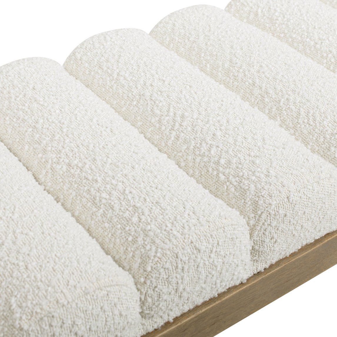 Add a touch of modern elegance and cozy texture to your home with this upholstered accent bench. Its soft boucle fabric, refined channel tufting, and sturdy wood legs make it a versatile piece for entryways, dining areas, bedroom ends, or seating nooks—combining style, comfort, and reliable support.