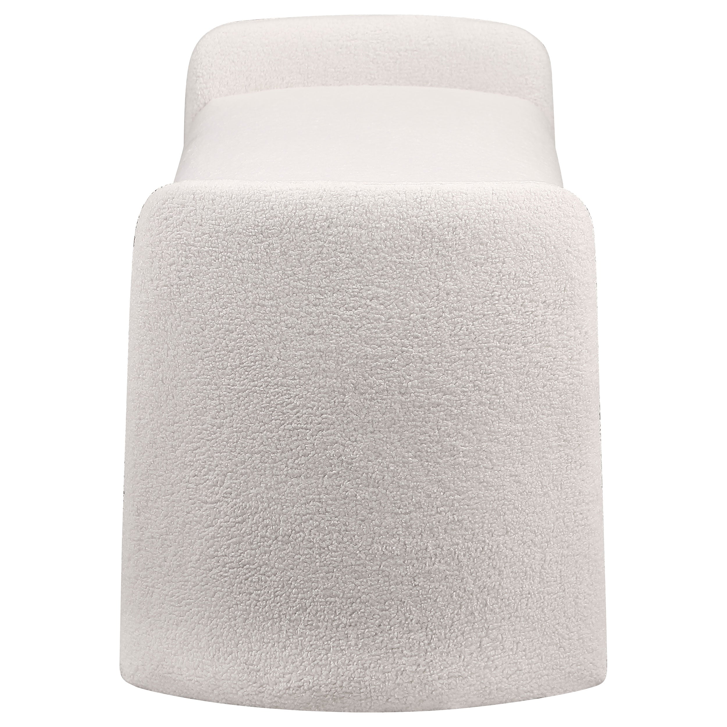 Elevate your living room or bedroom with this striking ivory velvet upholstered accent bench. Designed with a graceful, updated silhouette and wrapped in soft boucle fabric, it blends modern elegance with tactile warmth. The foam-padded seat and adjustable legs deliver comfortable seating and reliable stability, making it a versatile addition for seating, at the foot of a bed, or as a statement piece in an entryway.