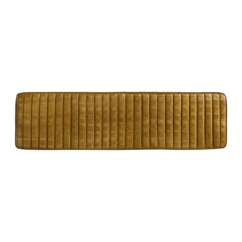 - The bench with hand-dyed antique camel genuine goat leather upholstery
