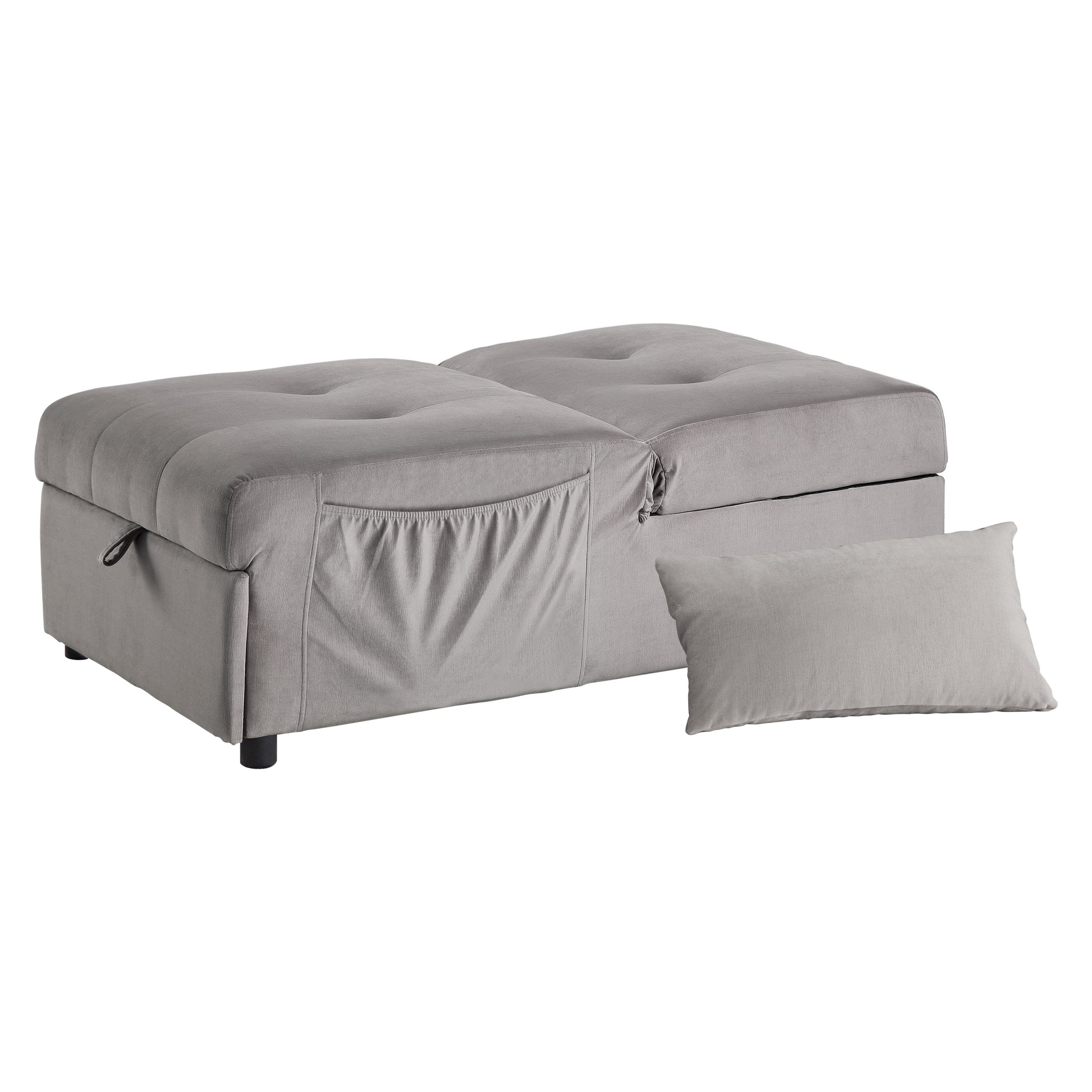 - Multi-function design: Converts from a tufted bench to a raised seating configuration with hidden storage, and extends into a pull-out bed for overnight guests.