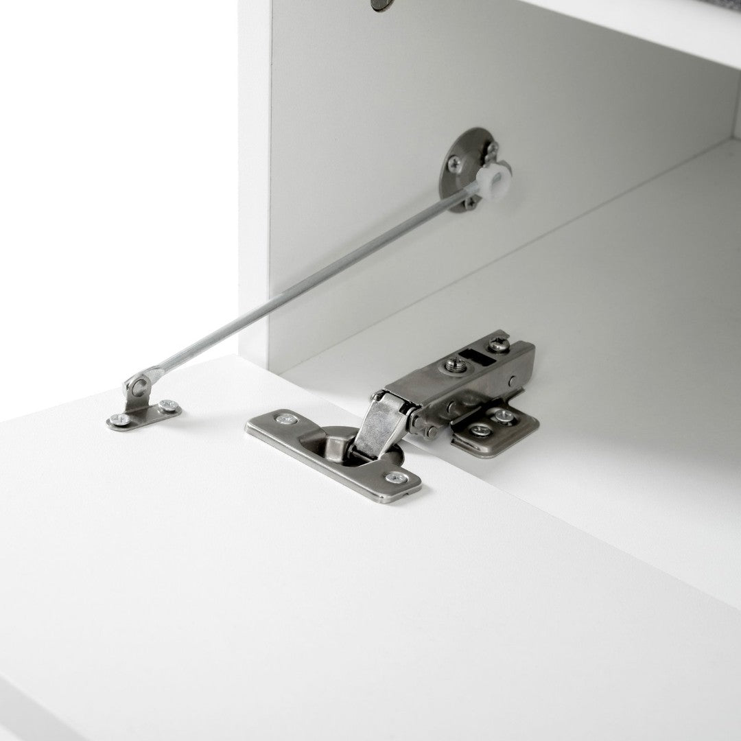 - Modern aesthetic: Clean white veneer finish, handleless doors with distinctive oval groove detailing for a contemporary, streamlined look