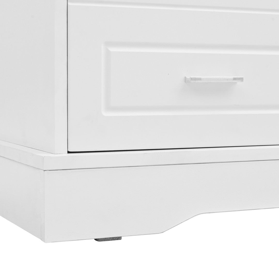 - Storage Configuration: Three cabinets with sliding doors for space‑saving access; two large interior compartments: Top compartment 21.6"W x 7.4"D x 14.1"H and Bottom compartment 14.6"W x 13.7"D x 13.4"H.