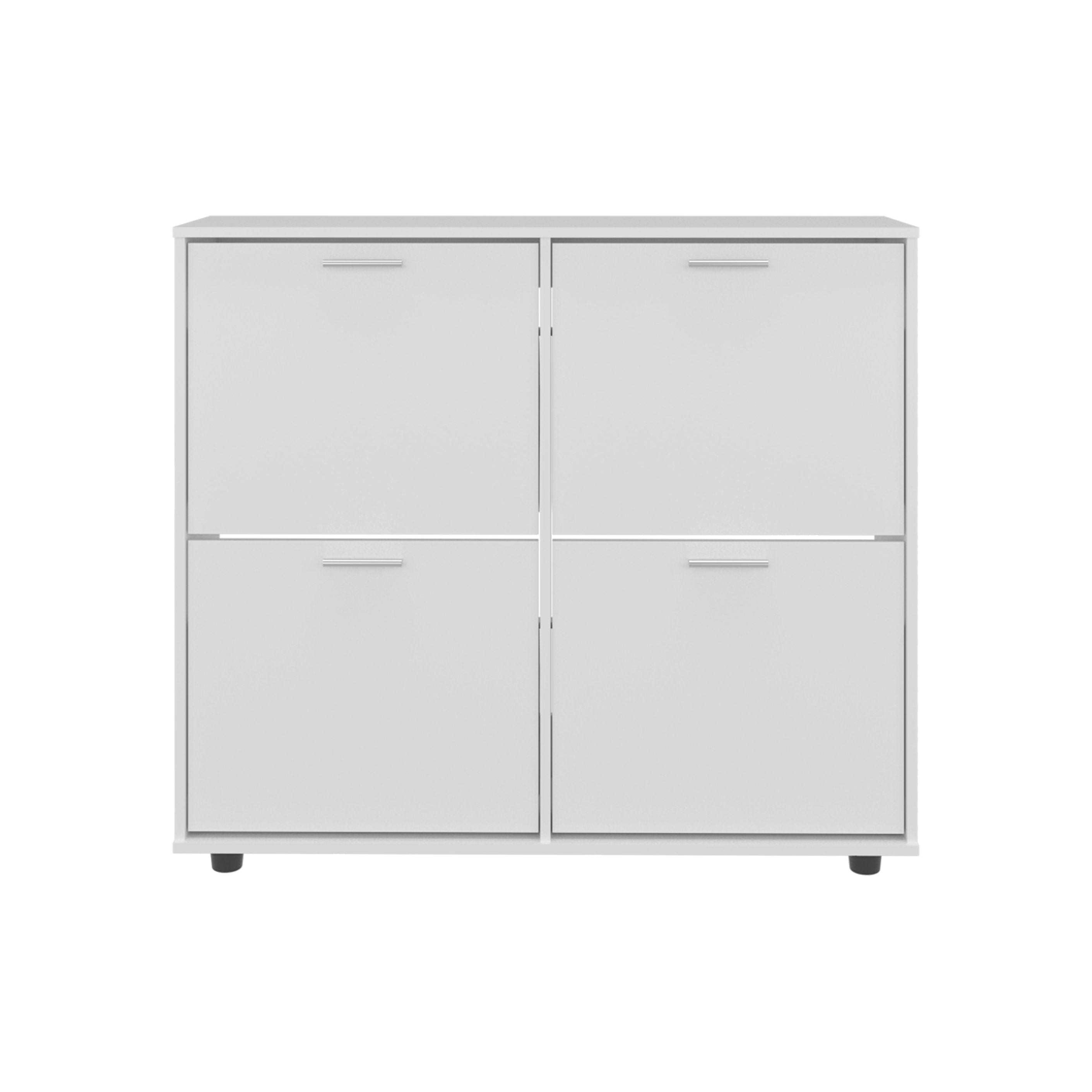 Keep your entryway or bedroom neat and stylish with this modern four-door shoe cabinet. The Opal cabinet offers concealed, organized storage for up to 20 pairs of shoes while its clean white finish and flat top provide functional styling options—perfect for busy households that want tidy footwear storage without sacrificing design.