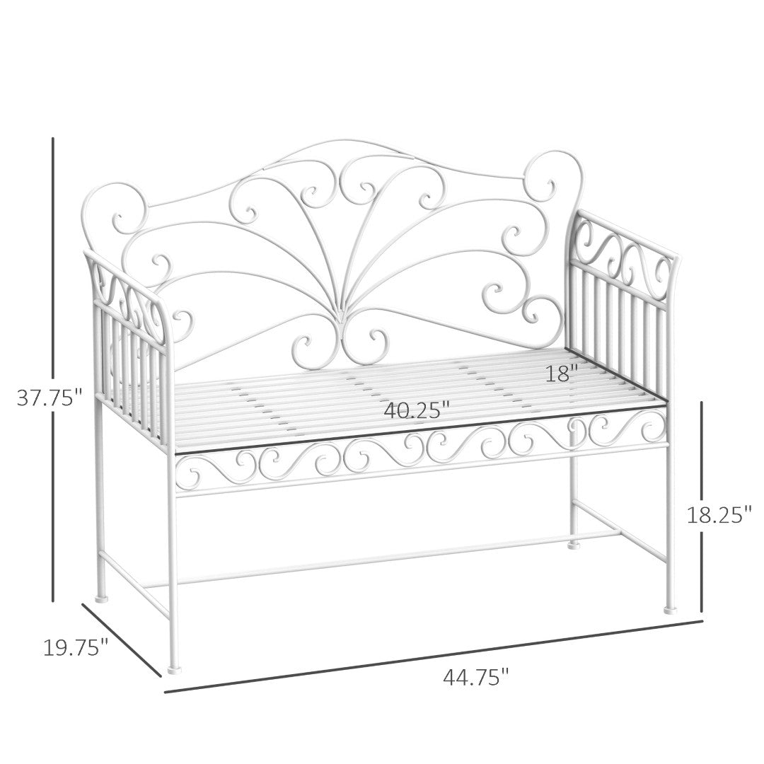 Enjoy peaceful moments outdoors with this elegant metal garden bench, designed for comfort, durability, and timeless style. Its antique-inspired scrollwork and crisp cream-white finish make it a versatile addition to patios, porches, poolside areas, and garden nooks—seating two comfortably while resisting the elements.