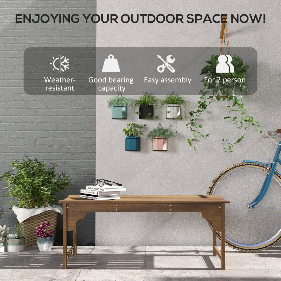 - Wooden Bench: The rustic all-natural fir wood of our outdoor bench has form and function, creating a country centerpiece with an excellent weight capacity. The wood has been pre-sealed with a water-based varnish in order to weatherproof its surface, creating a lustrous appearance.