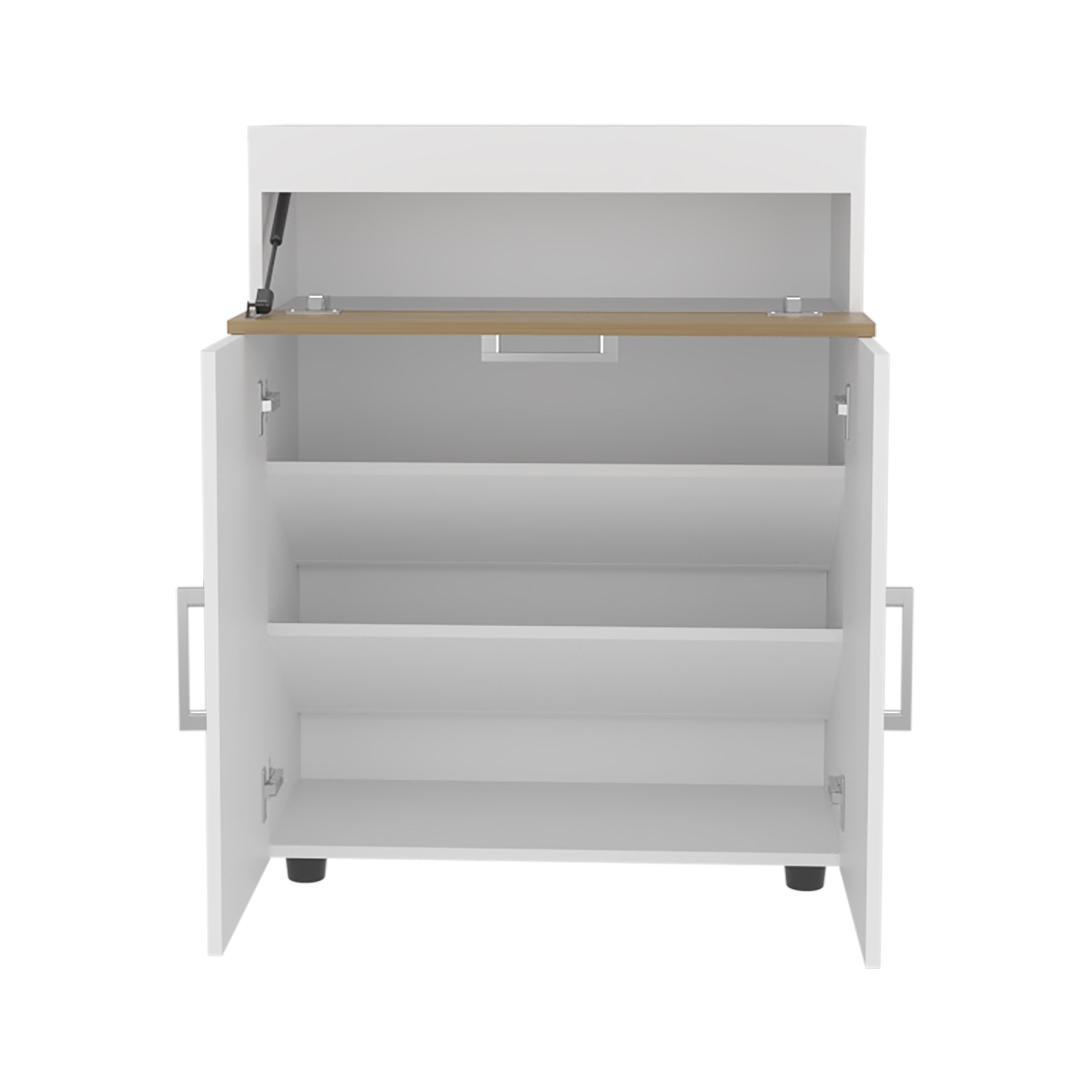 Keep your entryway tidy with this modern, compact shoe cabinet that blends clean white and natural oak finishes for a fresh, versatile look. Built from durable engineered wood, it offers concealed storage to hide clutter while keeping frequently worn shoes within easy reach—an ideal solution for small spaces, hallways, or living rooms.