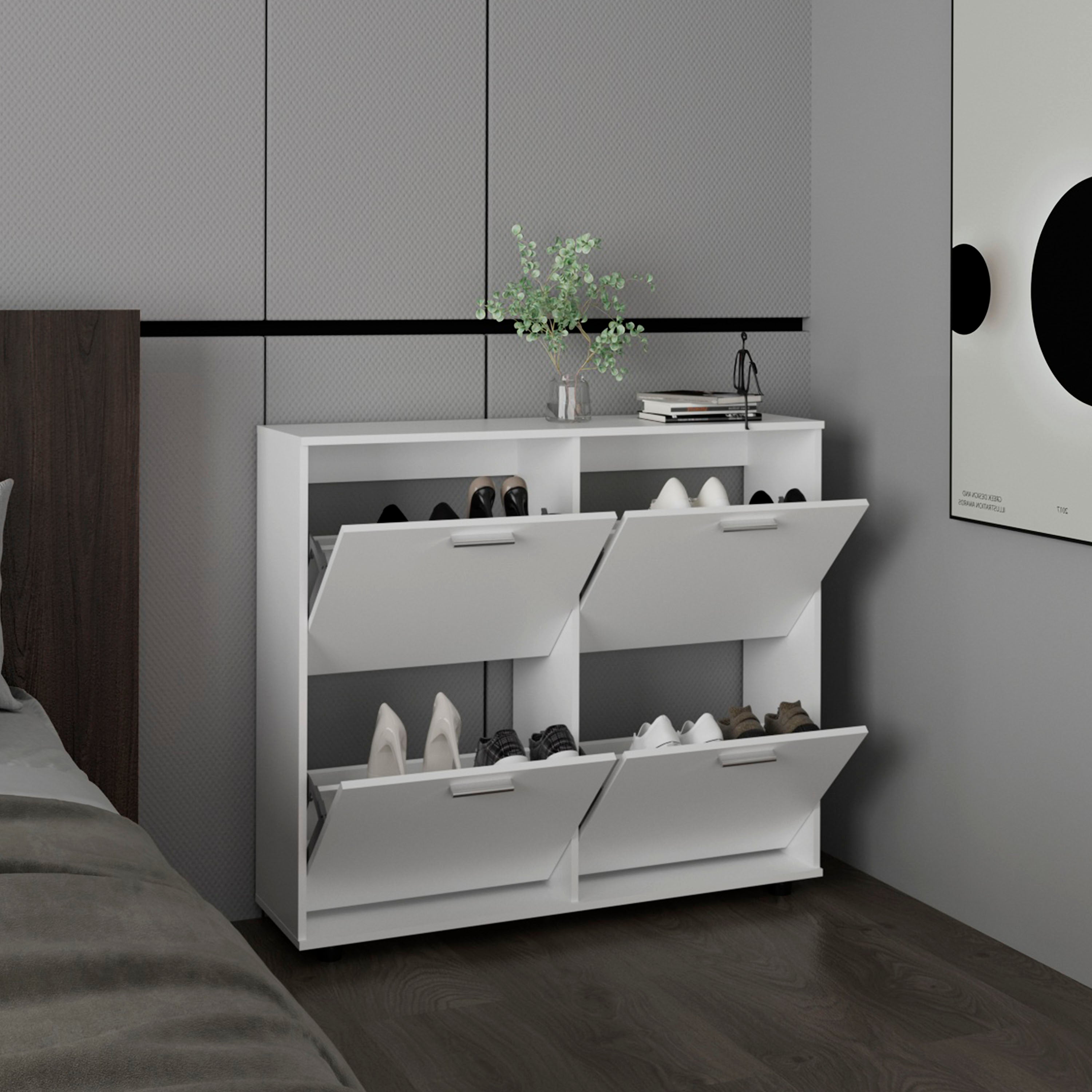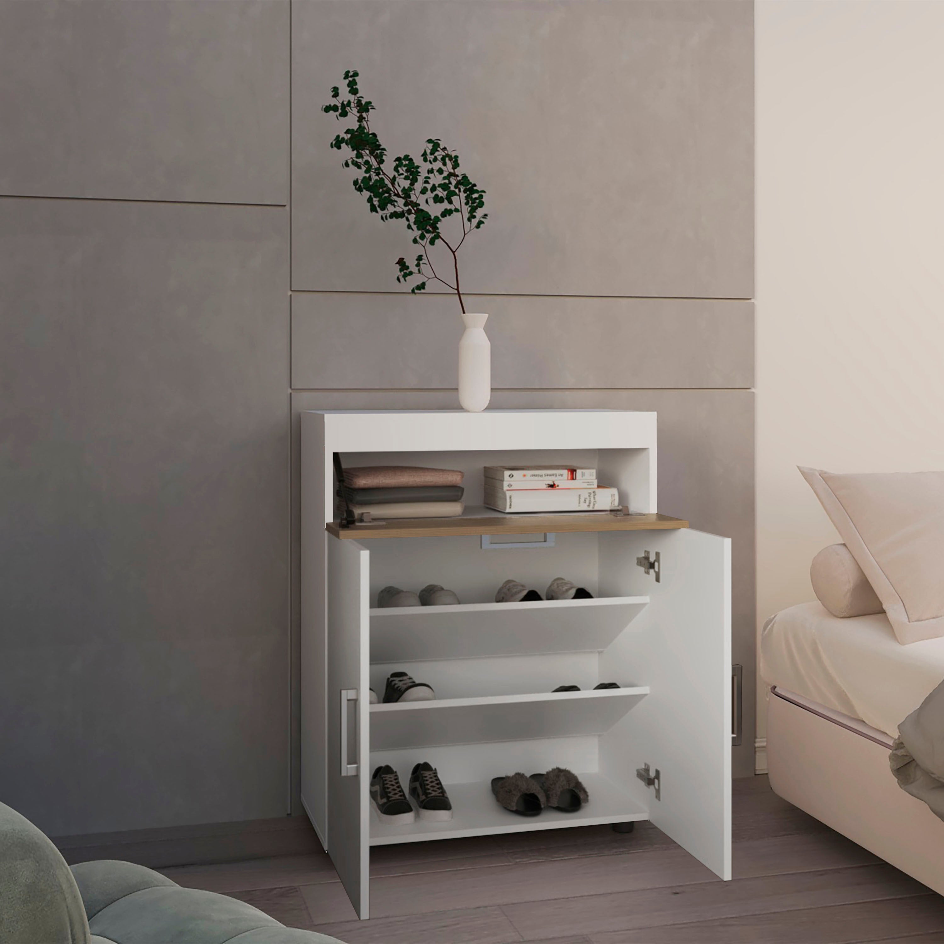 - 3 doors for concealed shoe storage
