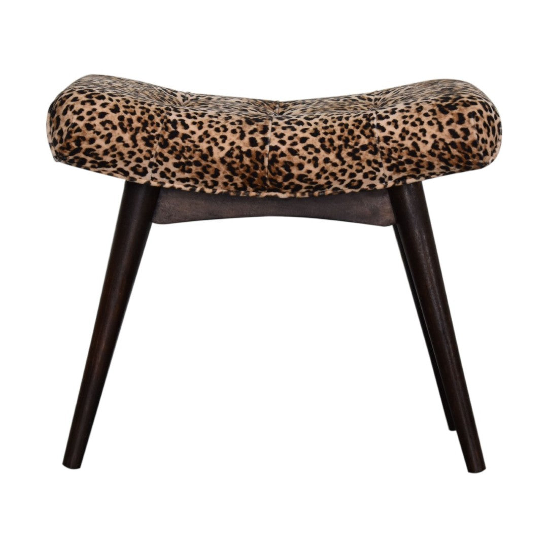 Bring bold pattern and warm natural wood into your home with this curved leopard-print velvet bench—an eye-catching accent that blends Nordic simplicity with retro-modern flair. Perfect for entryways, bedroom seating, or as an extra perch in living areas, its compact profile and sturdy solid-mango legs make it both stylish and practical.
