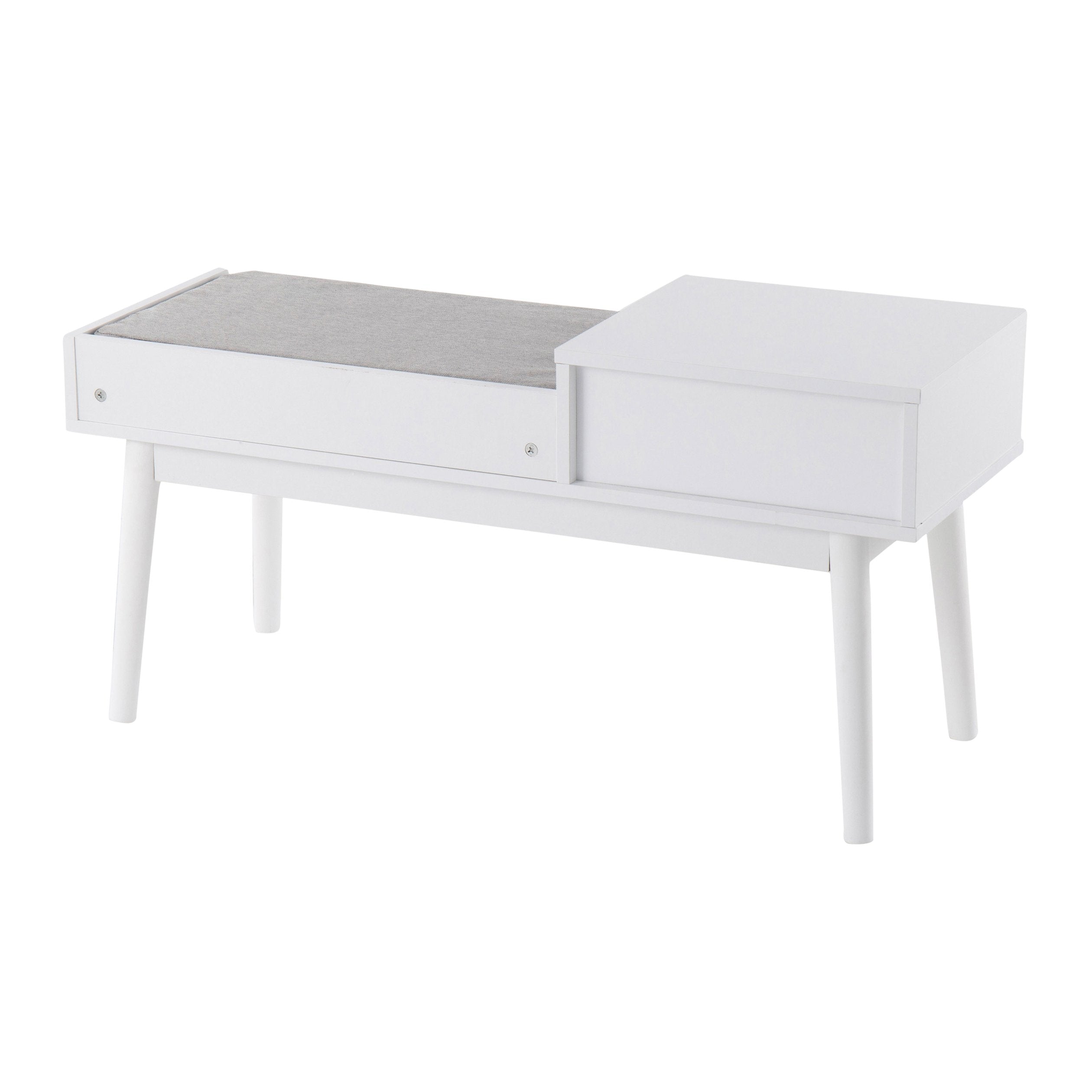 Add a clean, contemporary touch to your entryway, hallway, or bedroom with this versatile bench. Its low-profile silhouette, padded grey fabric seat, and white wood frame create a modern look that’s both comfortable and functional—complete with a pull-out drawer to keep small essentials neatly tucked away.