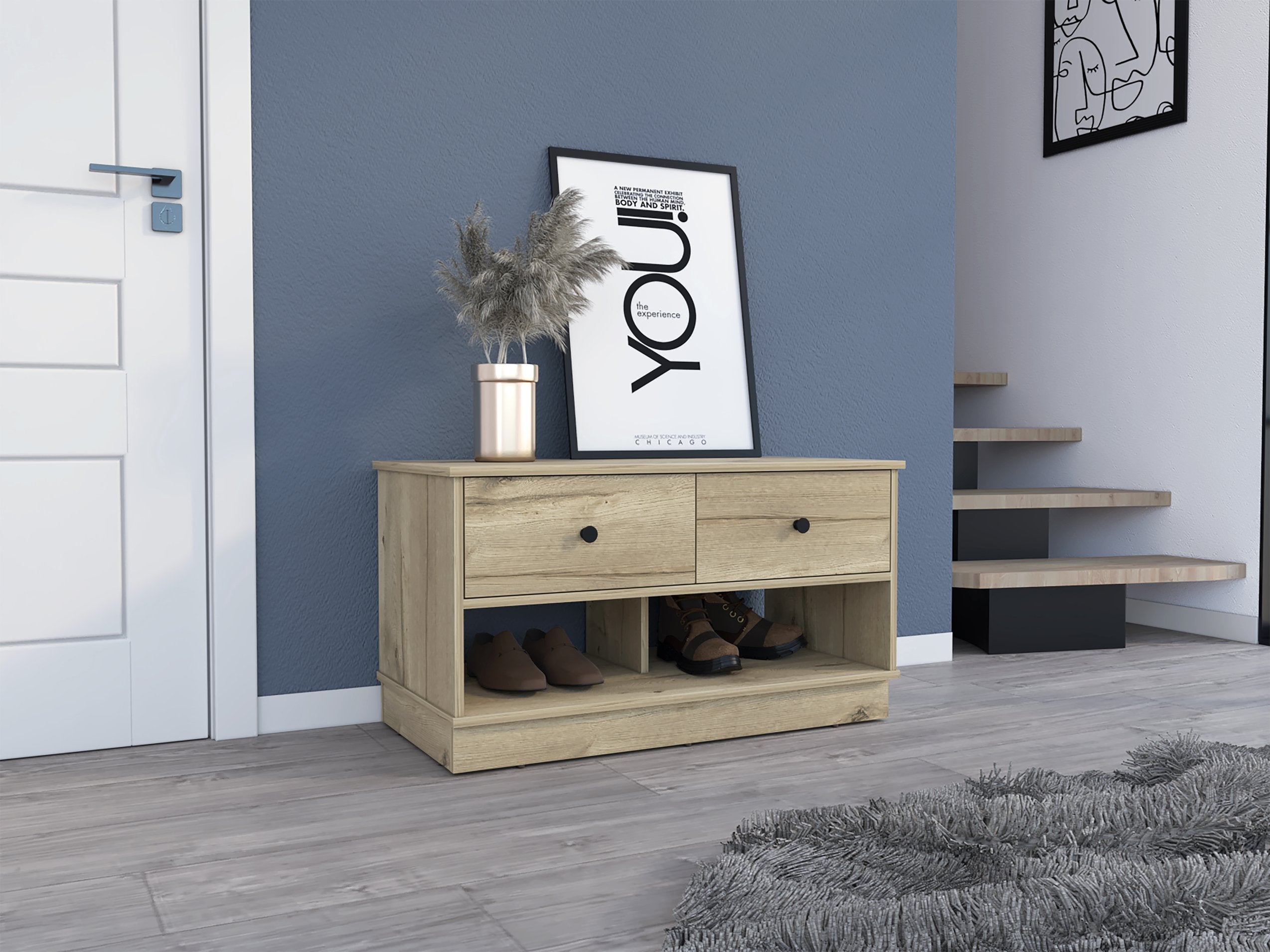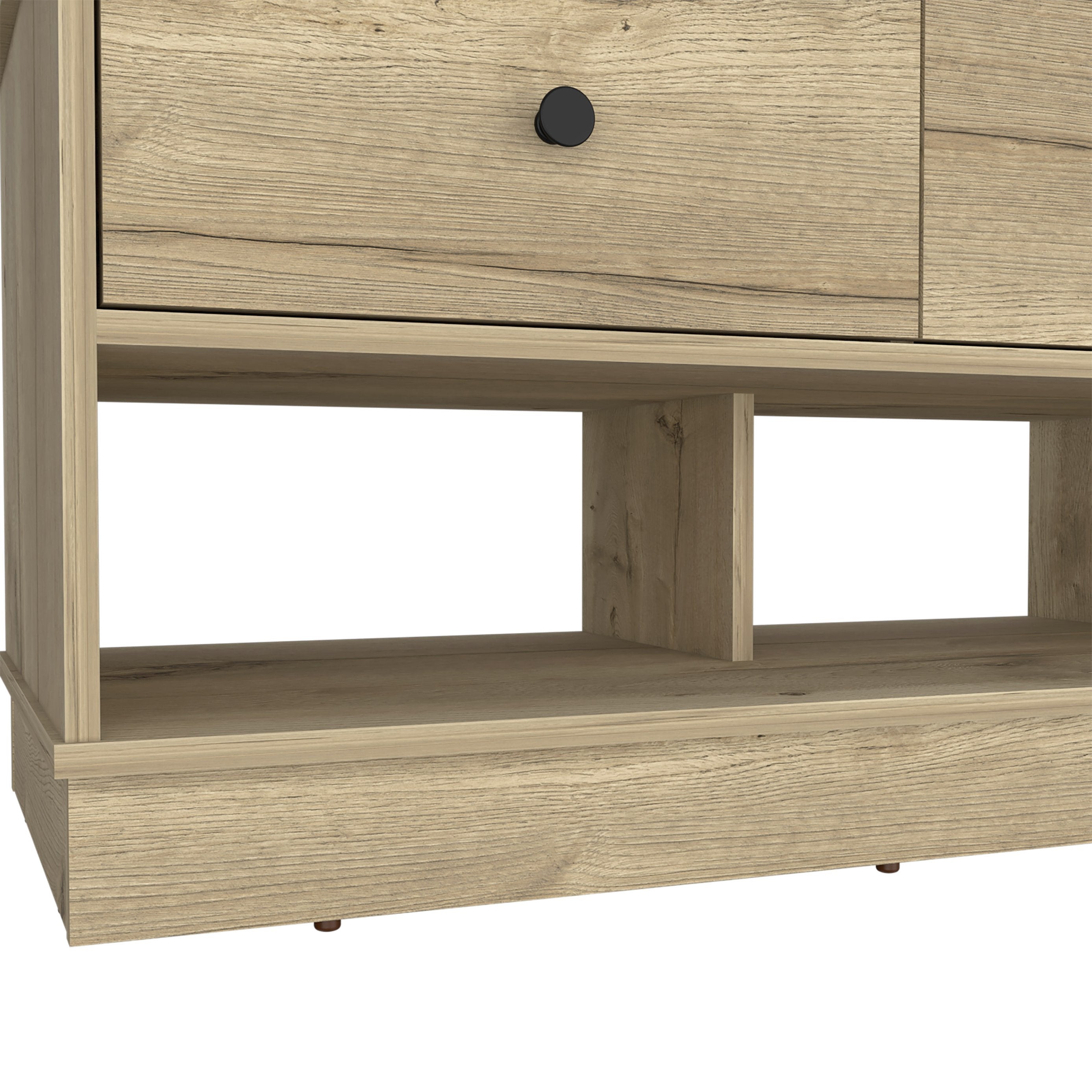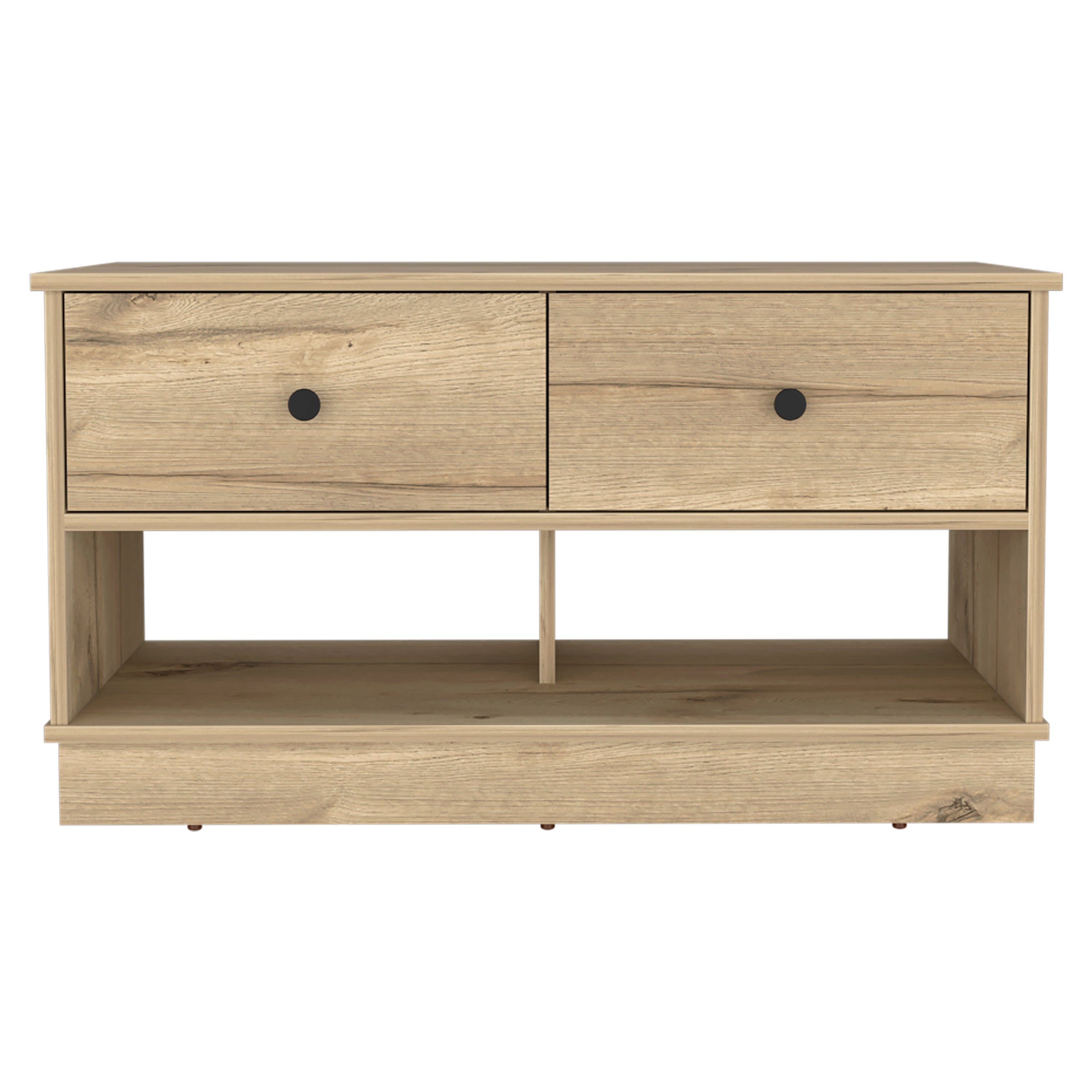 - Storage configuration: Two pull-out drawers plus two open shelves for easy organization and quick access