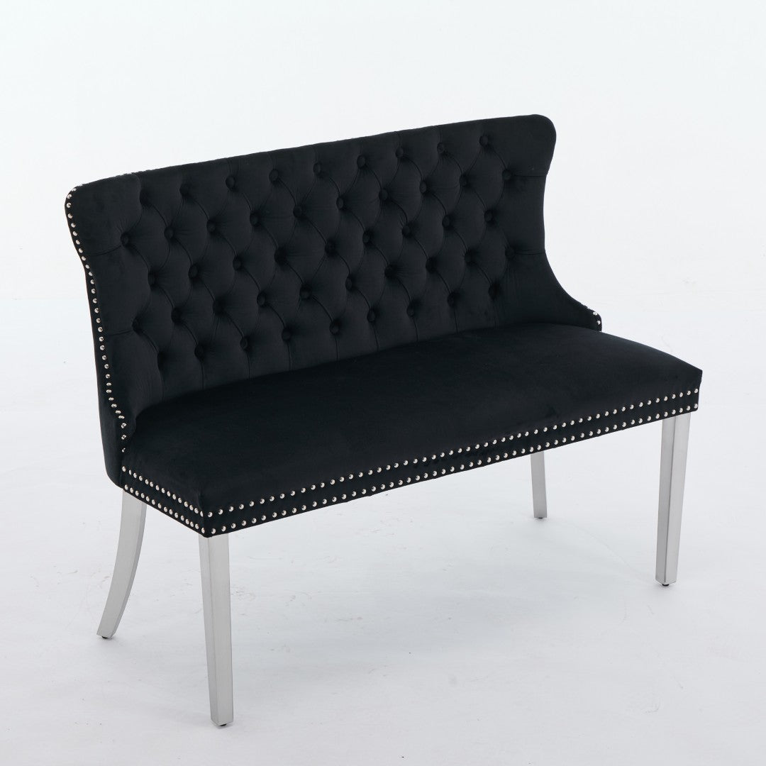 Elevate your dining area with a chic, comfortable loveseat that blends mid-century modern flair with durable construction. This two-seat velvet bench offers roomy seating for meals or gatherings, handcrafted tufting for a luxe look, and sturdy metal legs for lasting stability—an elegant focal point that enhances both casual and formal dining spaces.