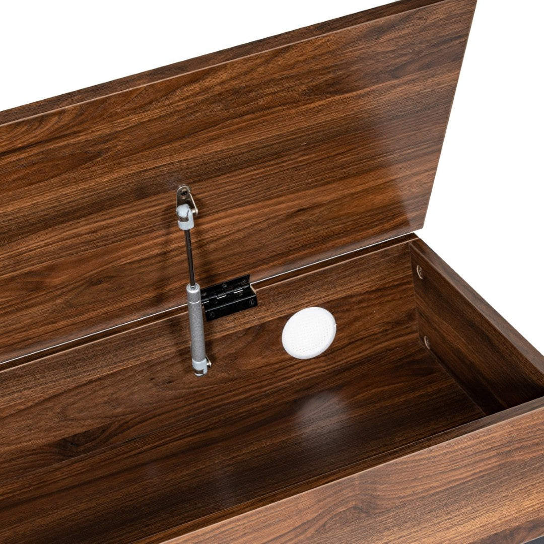 - Storage: Lift-up seat reveals a generous interior compartment for concealed storage; lower shelf for shoes, baskets, or display