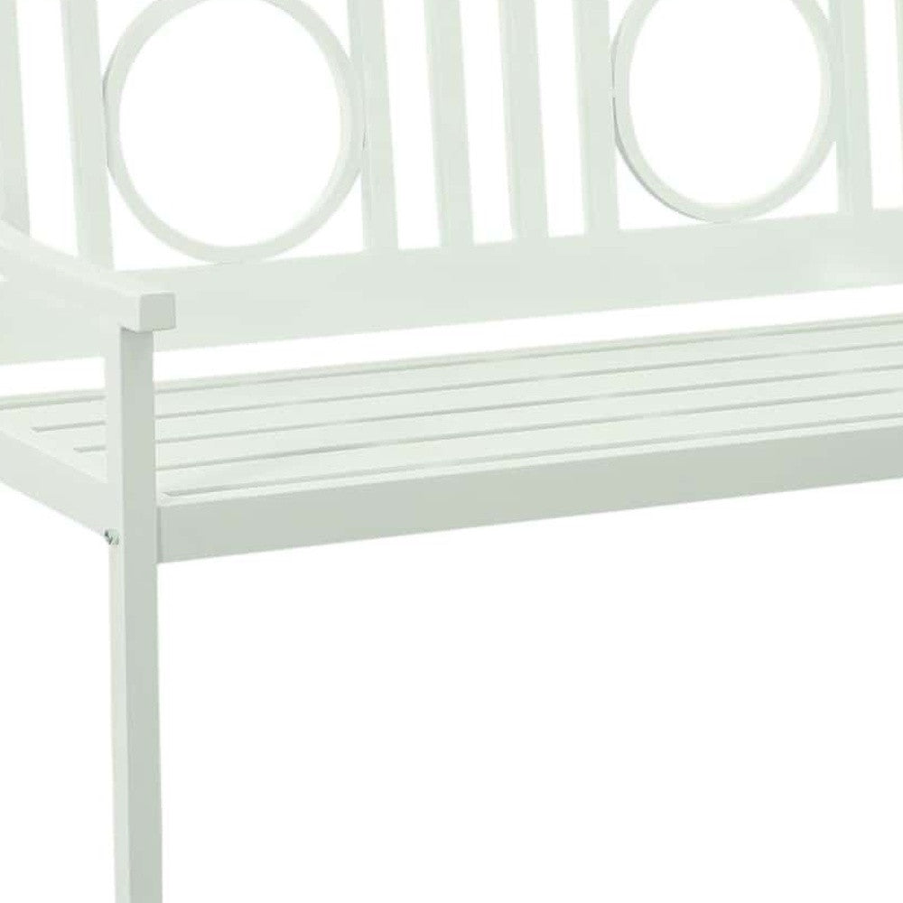 - Chic white coloration with a slat and geometric design is casually elegant and compliments most any outdoor space.