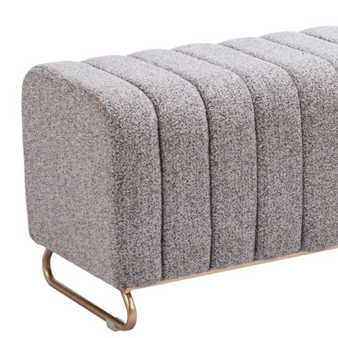 - Upholstered in soft and durable vertical tufted boucle material, this bench offers both comfort and a chic look.