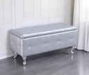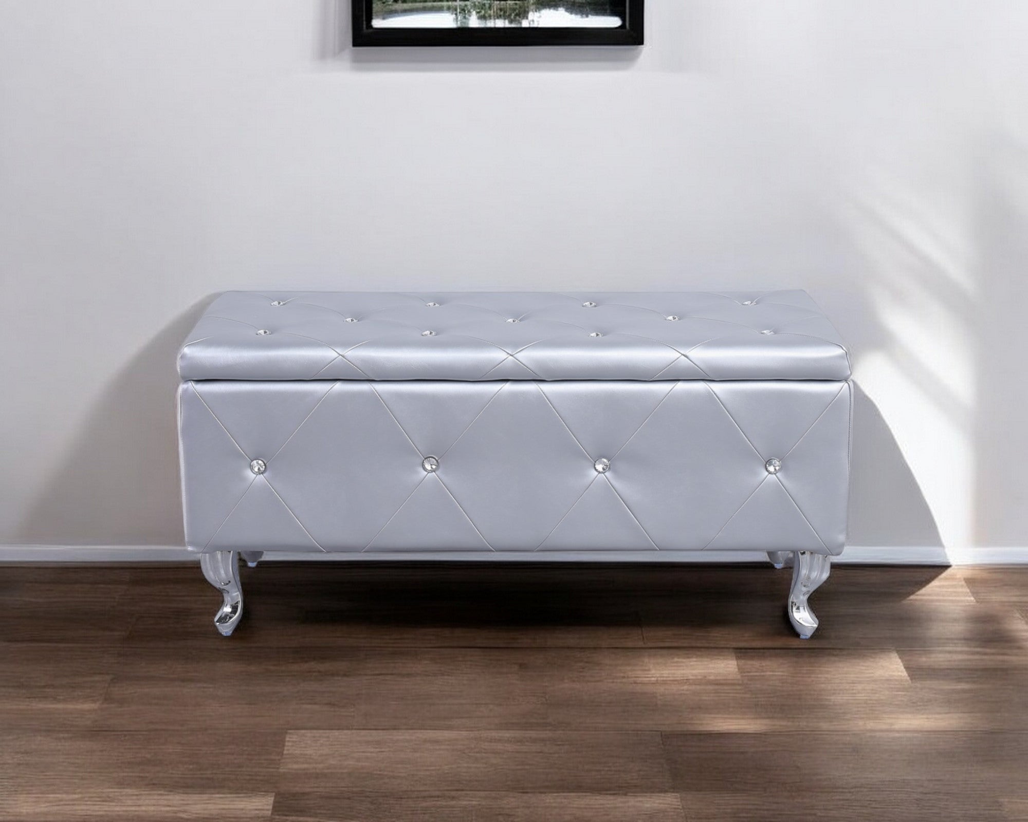 - Modern glitz and glam button tufted faux leather storage bench.